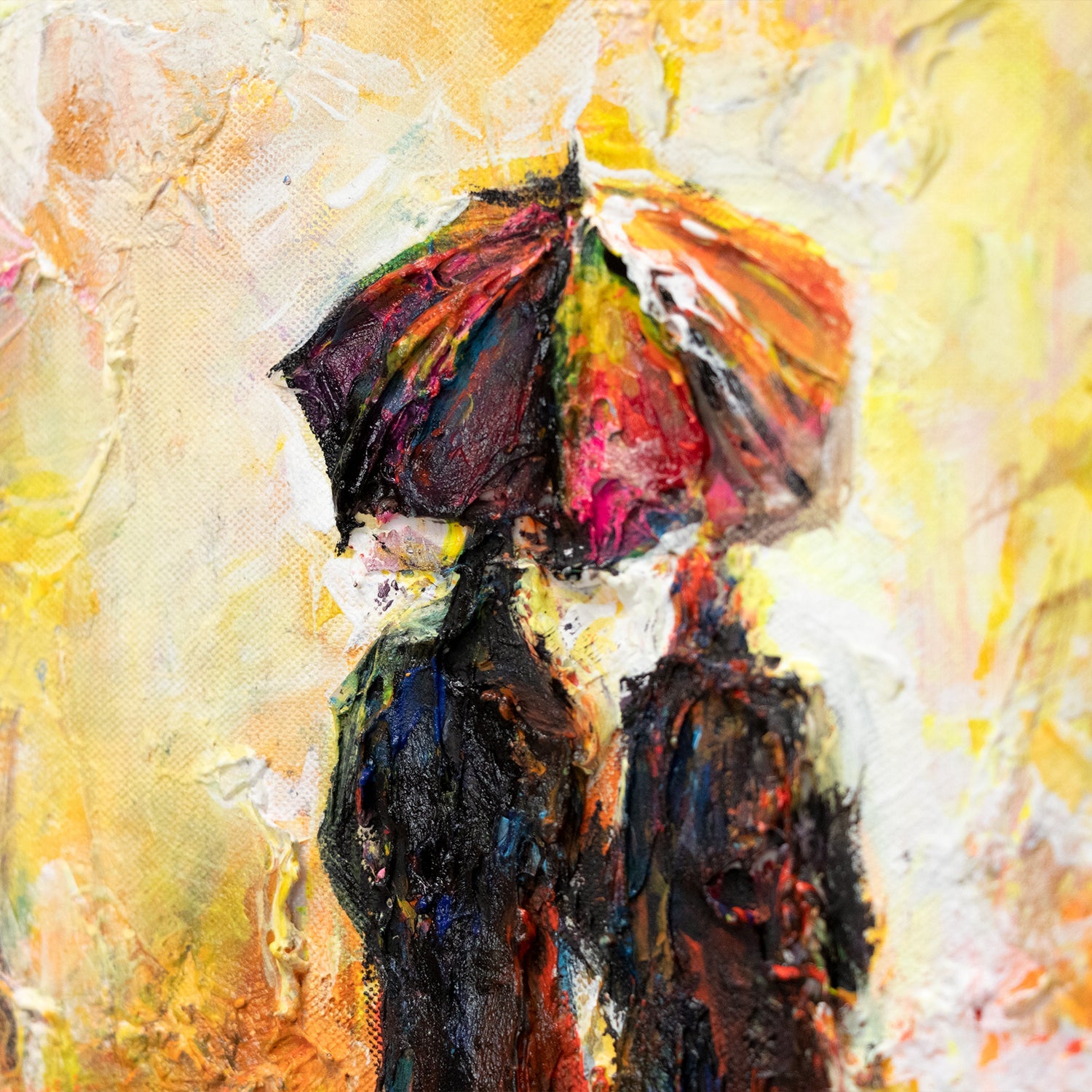 • Bunte Acrylmalerei mit Paar im Regen moderne Wandkunst