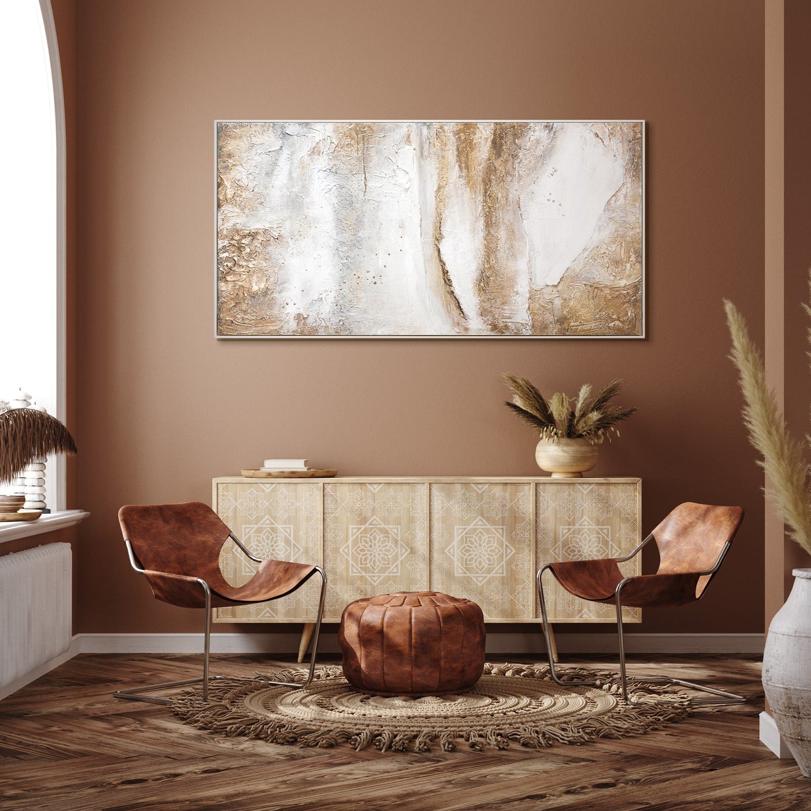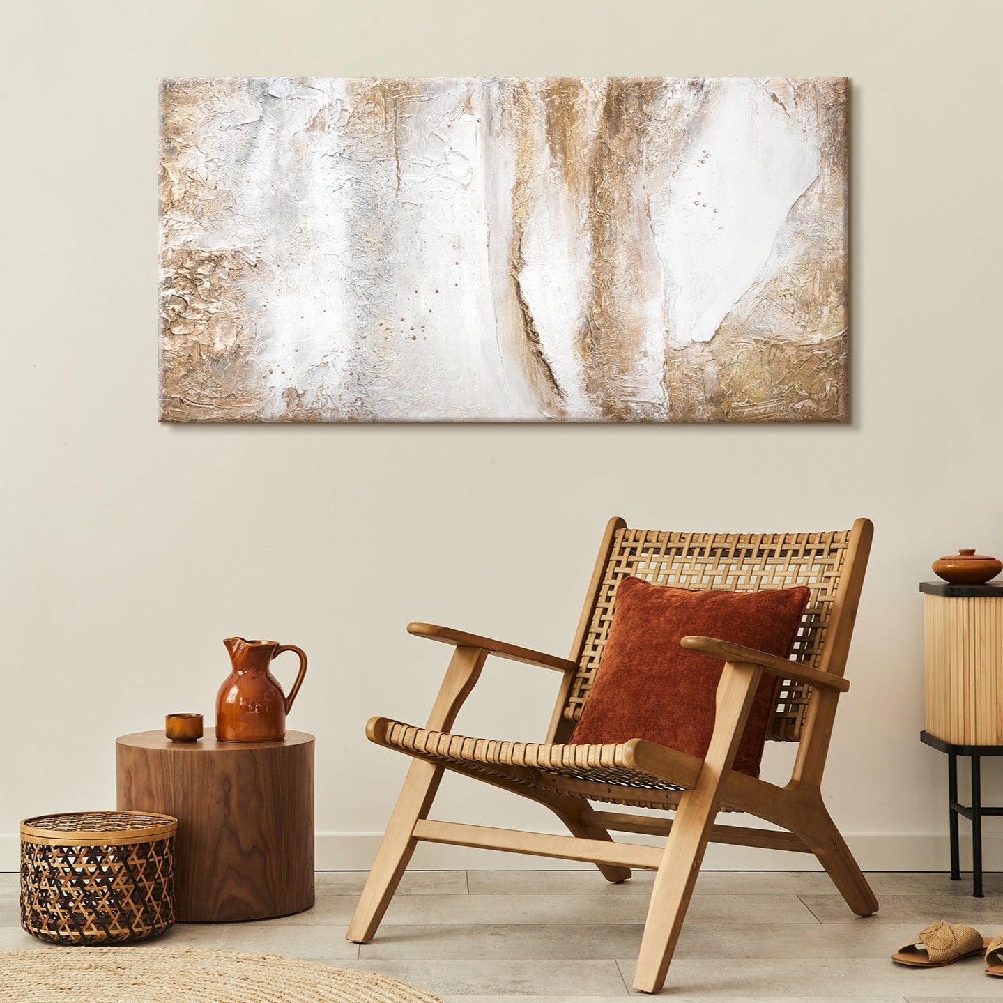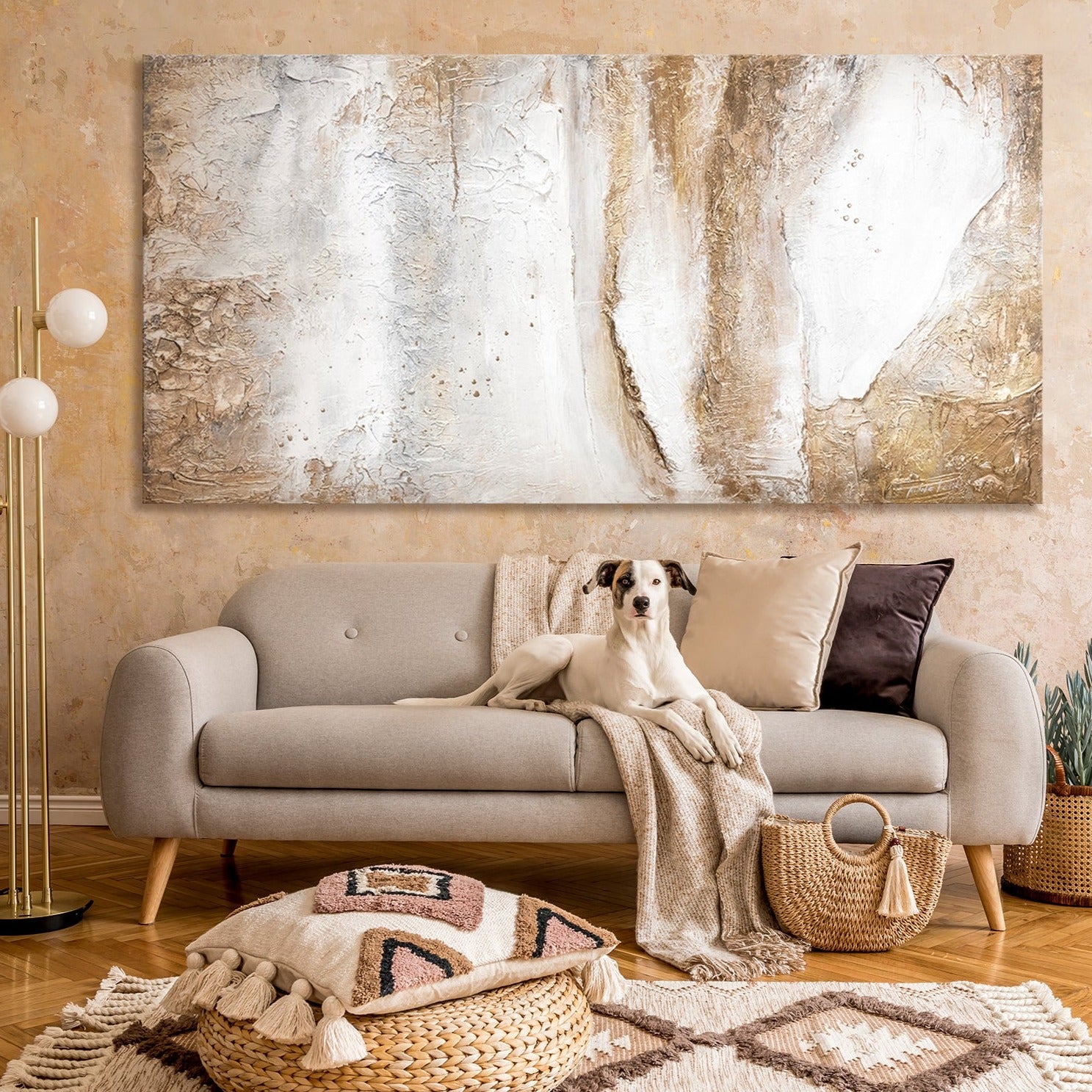• Abstraktes Acrylbild Struktur Wanddeko Gold Beige