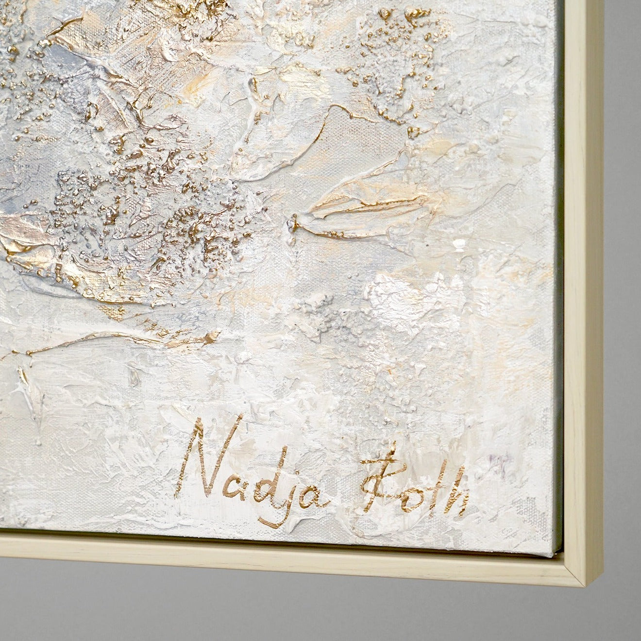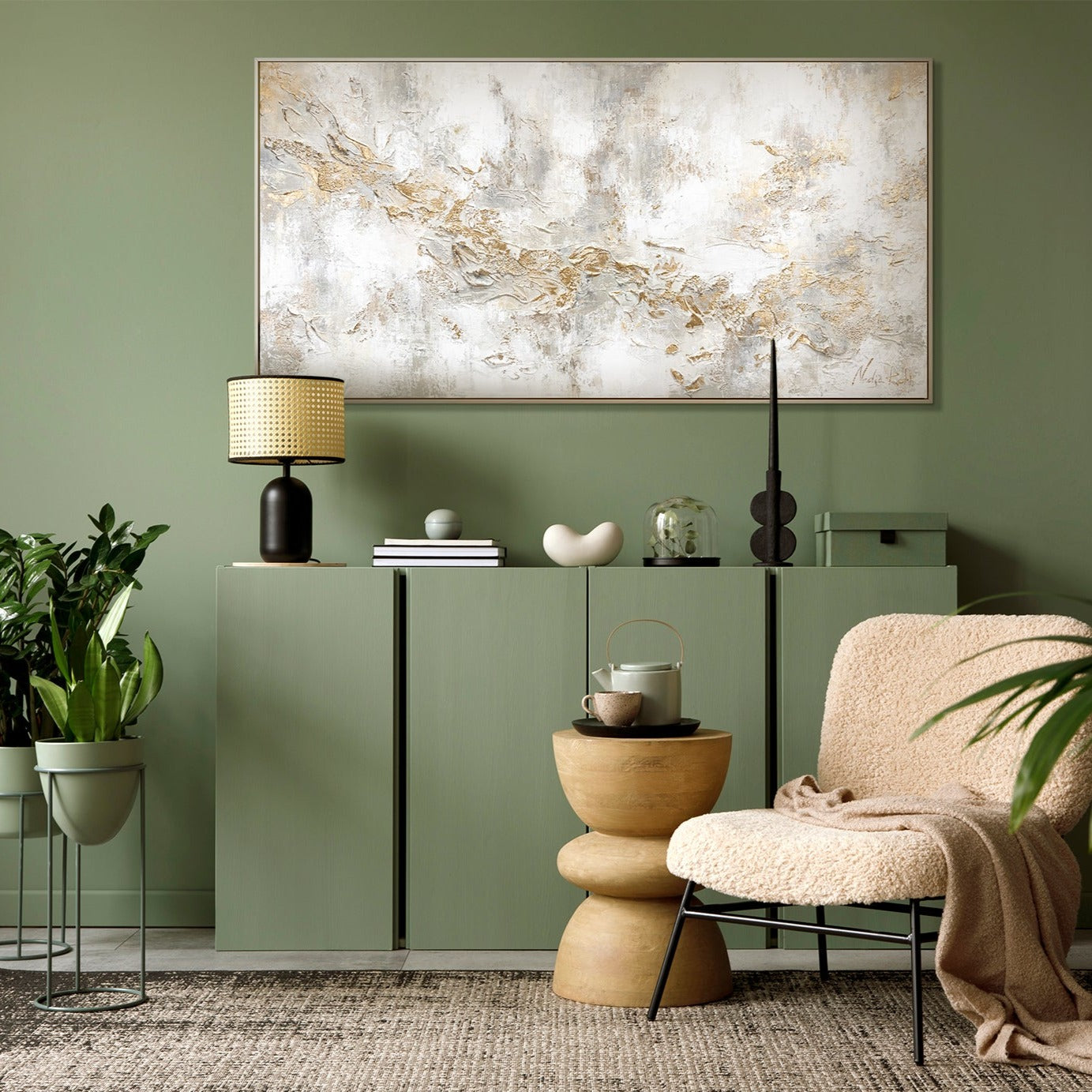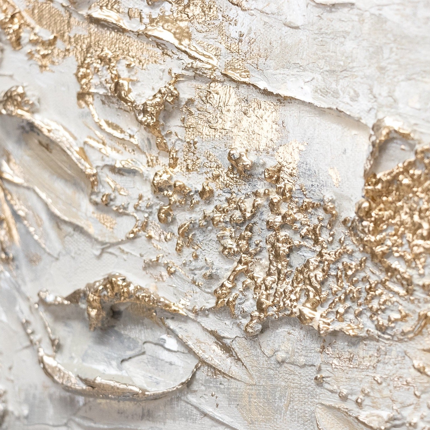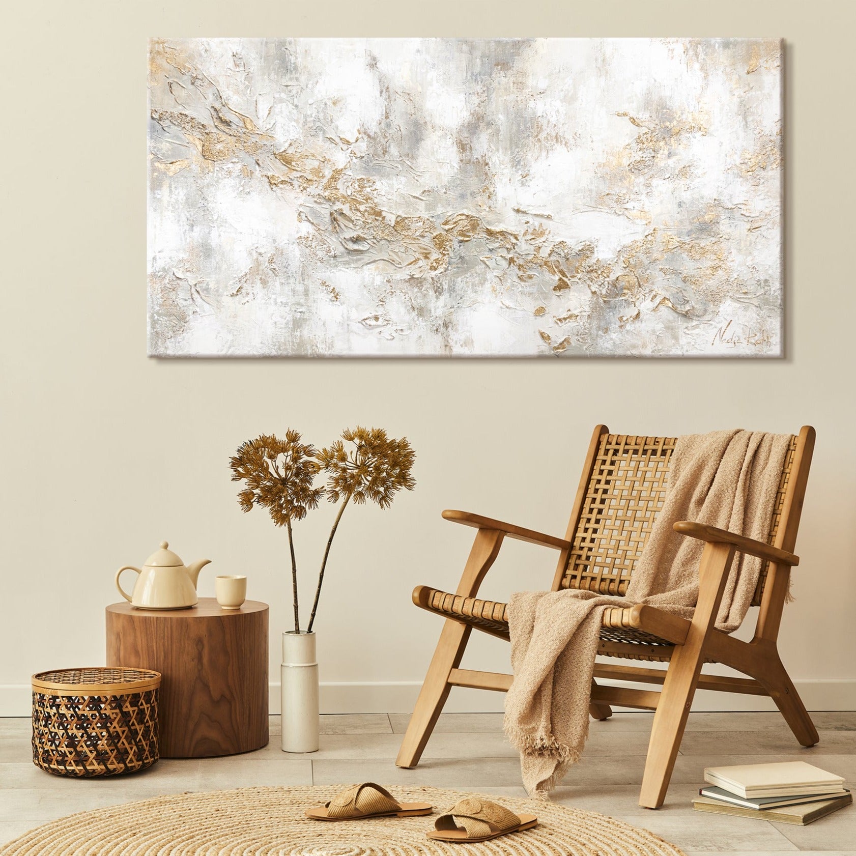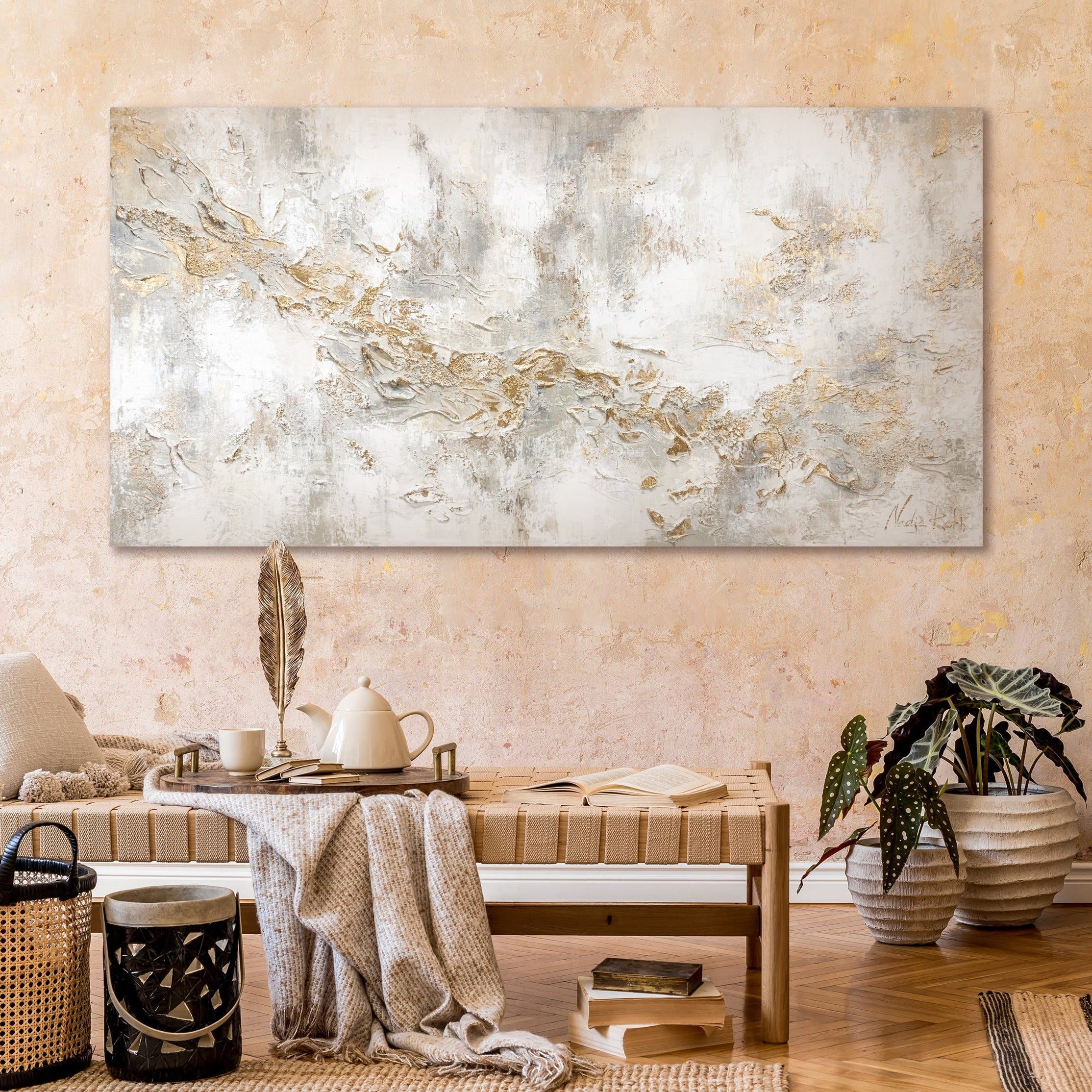 Tauchen Sie ein in die zeitlose Eleganz dieses handgemalten abstrakten Gemäldes. Die zarten Goldtöne und die strukturierte Oberfläche schaffen eine luxuriöse und beruhigende Atmosphäre. Dieses Kunstwerk ist 100% handgefertigt und bringt die künstlerische Vision perfekt zum Ausdruck. Genießen Sie die kostenlose Lieferung direkt zu Ihnen nach Hause.