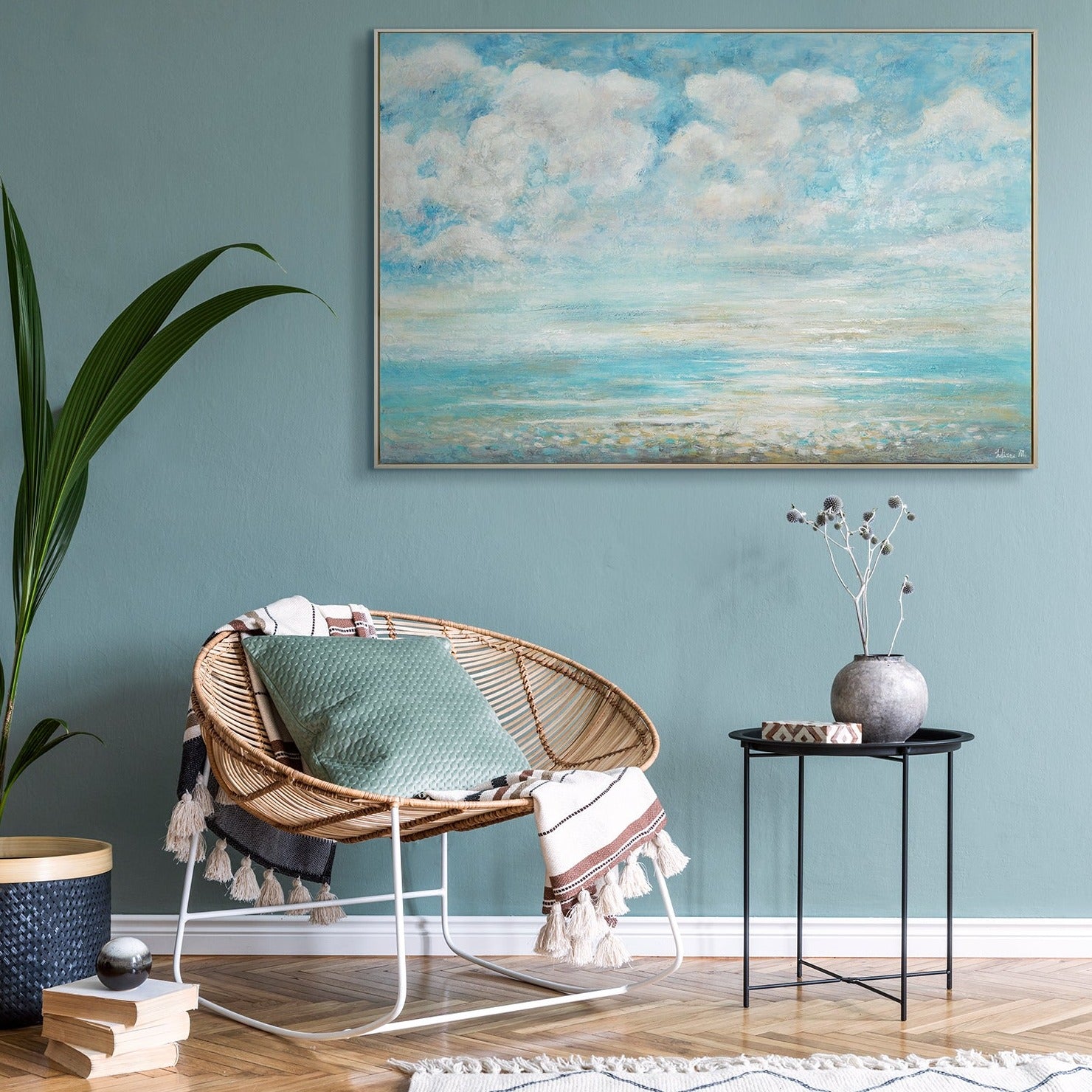 Ein großes schönes Gemälde mit dem Meer passt ideal in das Innere einer Stadtwohnung oder eines Landhauses, eines Wohnzimmers oder eines Arbeitszimmers. Sie erhalten nicht nur ein Gemälde, sondern ein exklusives und einzigartiges Kunstwerk, das von einem talentierten Künstler gemalt wurde.