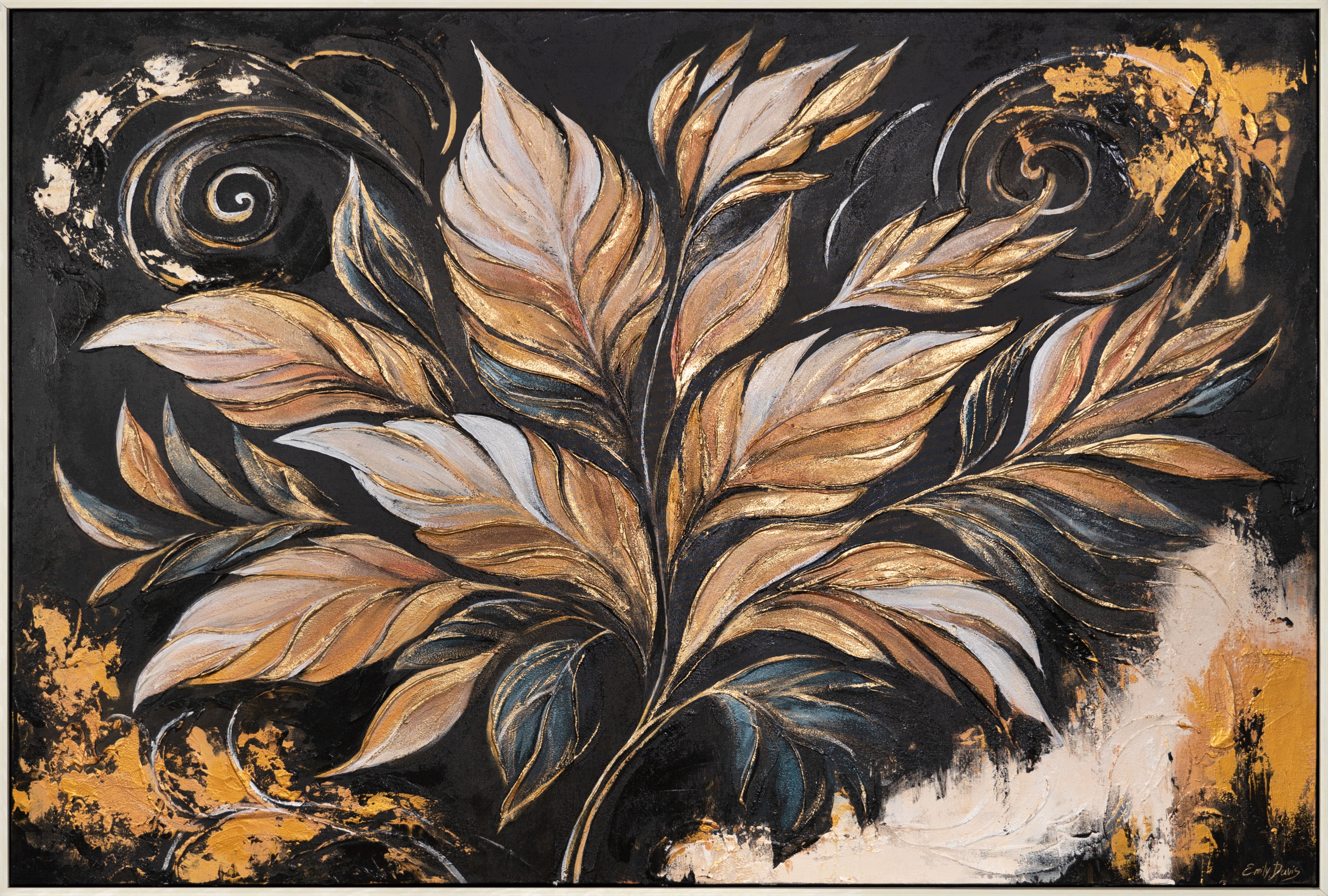 • Strukturierte Blattform – Acrylmalerei Schwarz mit Gold