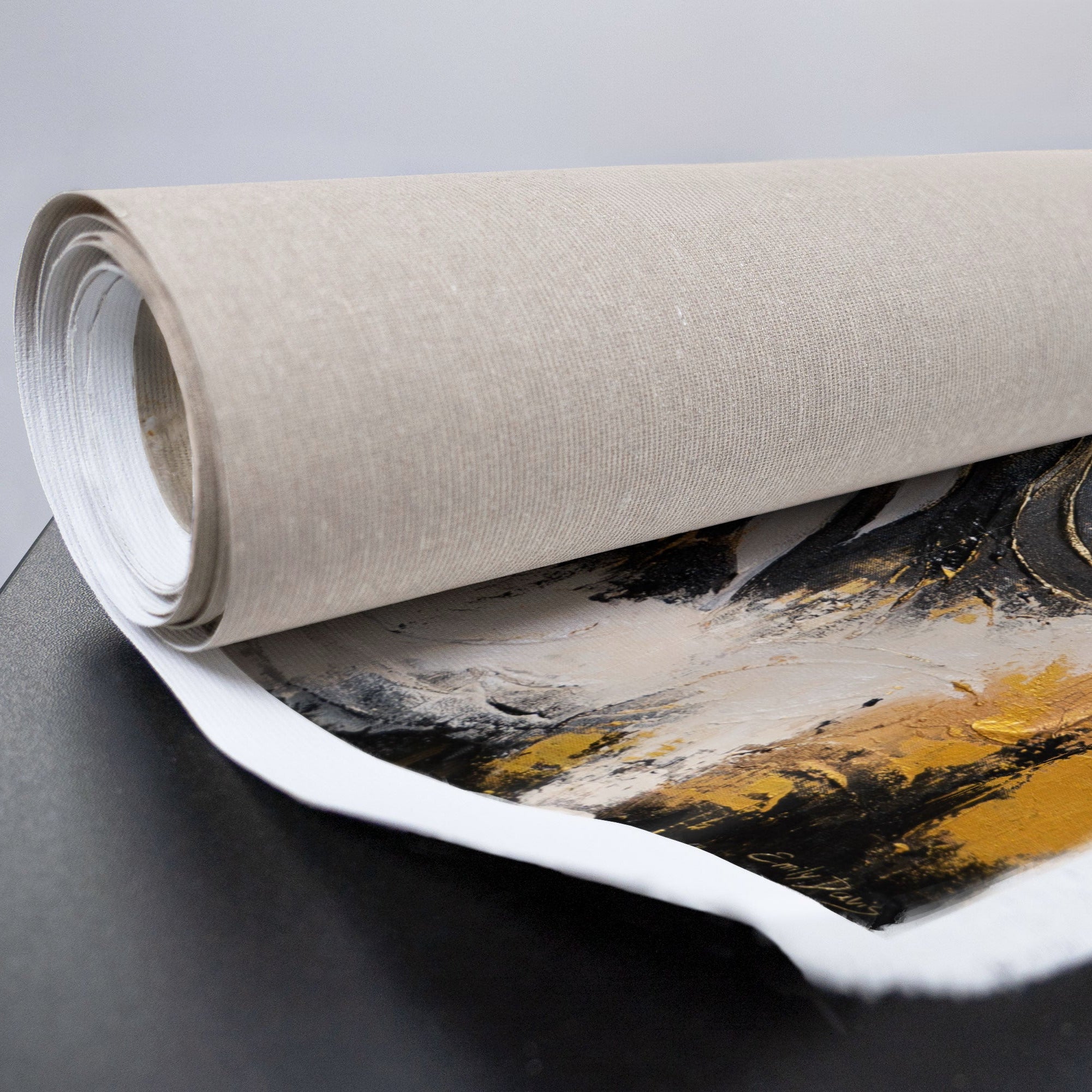• Strukturierte Leinwandrolle mit Stofftextur