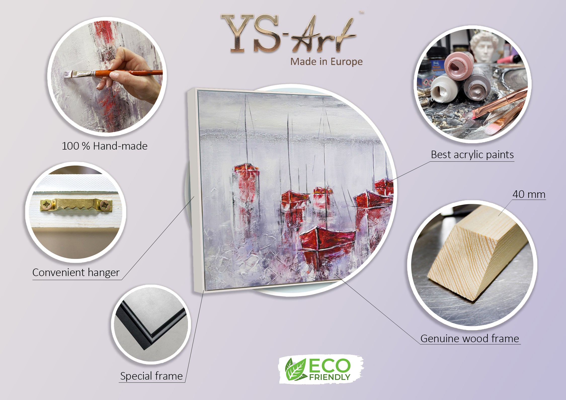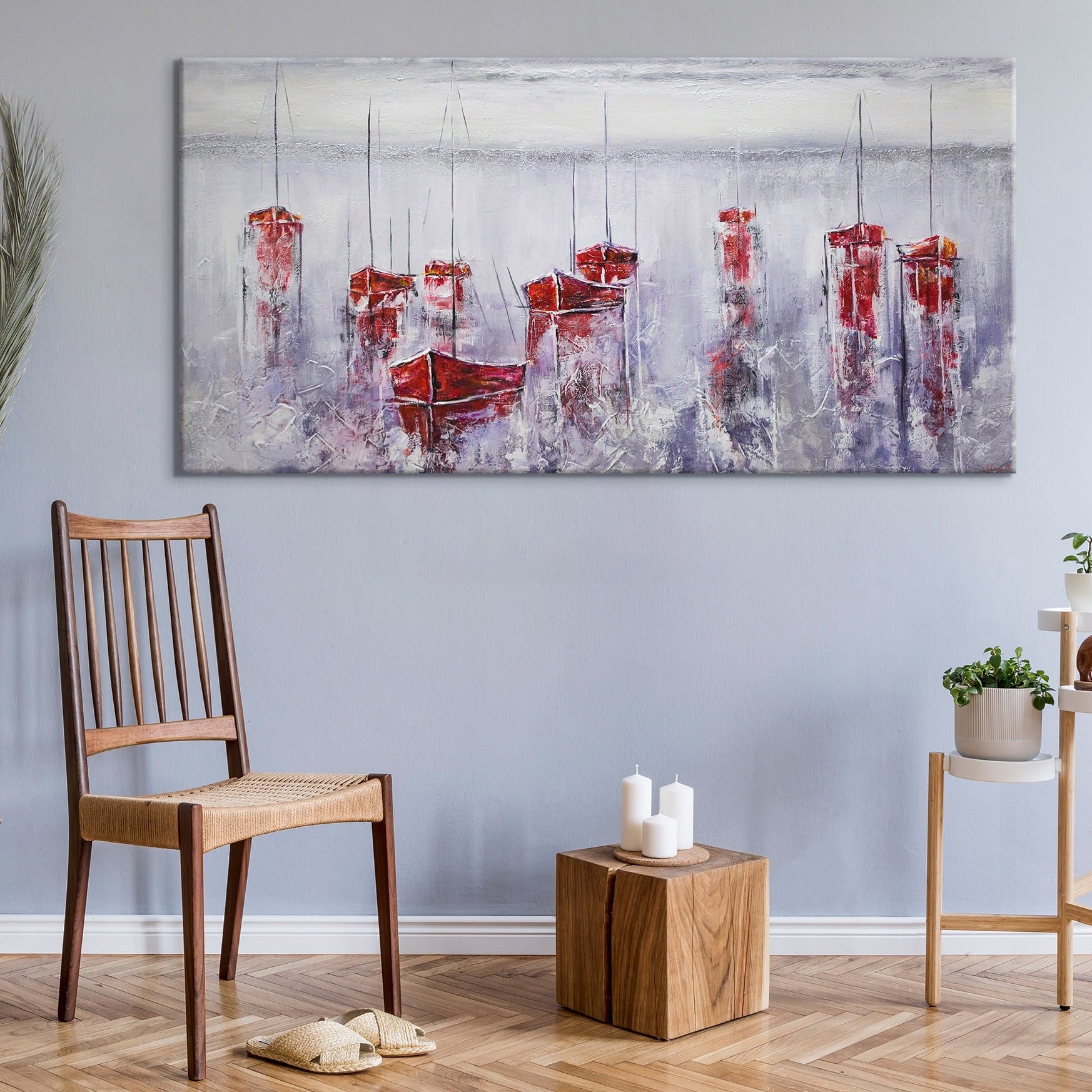 - Materialien: Acryl, Leinwand, Keilrahmen aus Naturholz.