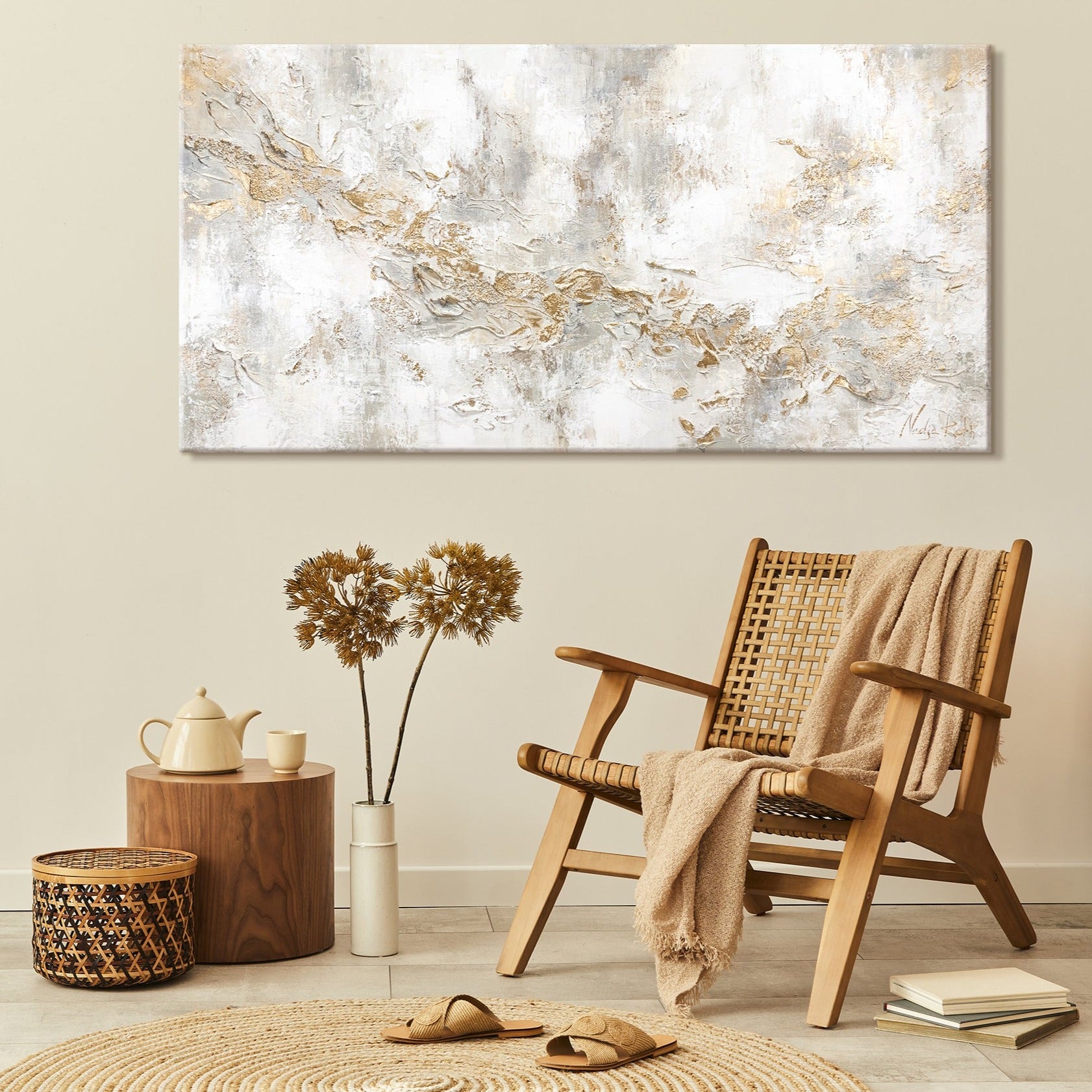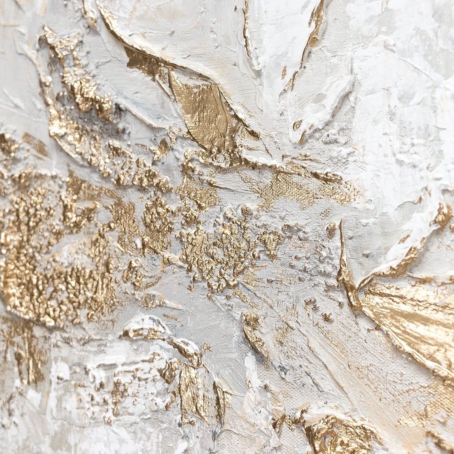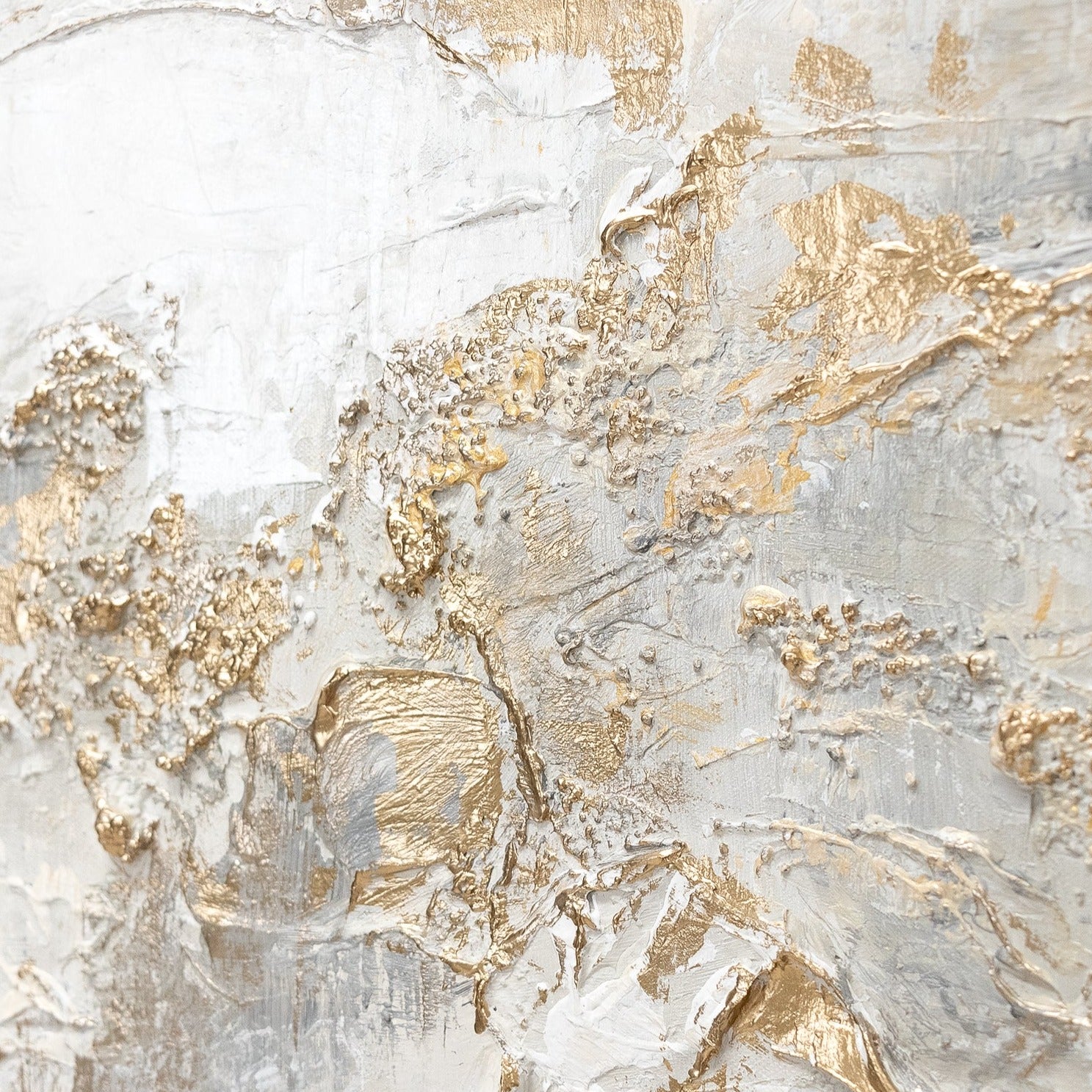 Bereichern Sie Ihr Interieur mit diesem handgemalten abstrakten Gemälde. Die goldenen Akzente und die komplexen Texturen schaffen eine inspirierende und luxuriöse Atmosphäre. Jedes Detail dieses Kunstwerks ist 100% handgefertigt und ein echtes Unikat. Wir bieten Ihnen eine kostenlose Lieferung direkt zu Ihnen nach Hause.