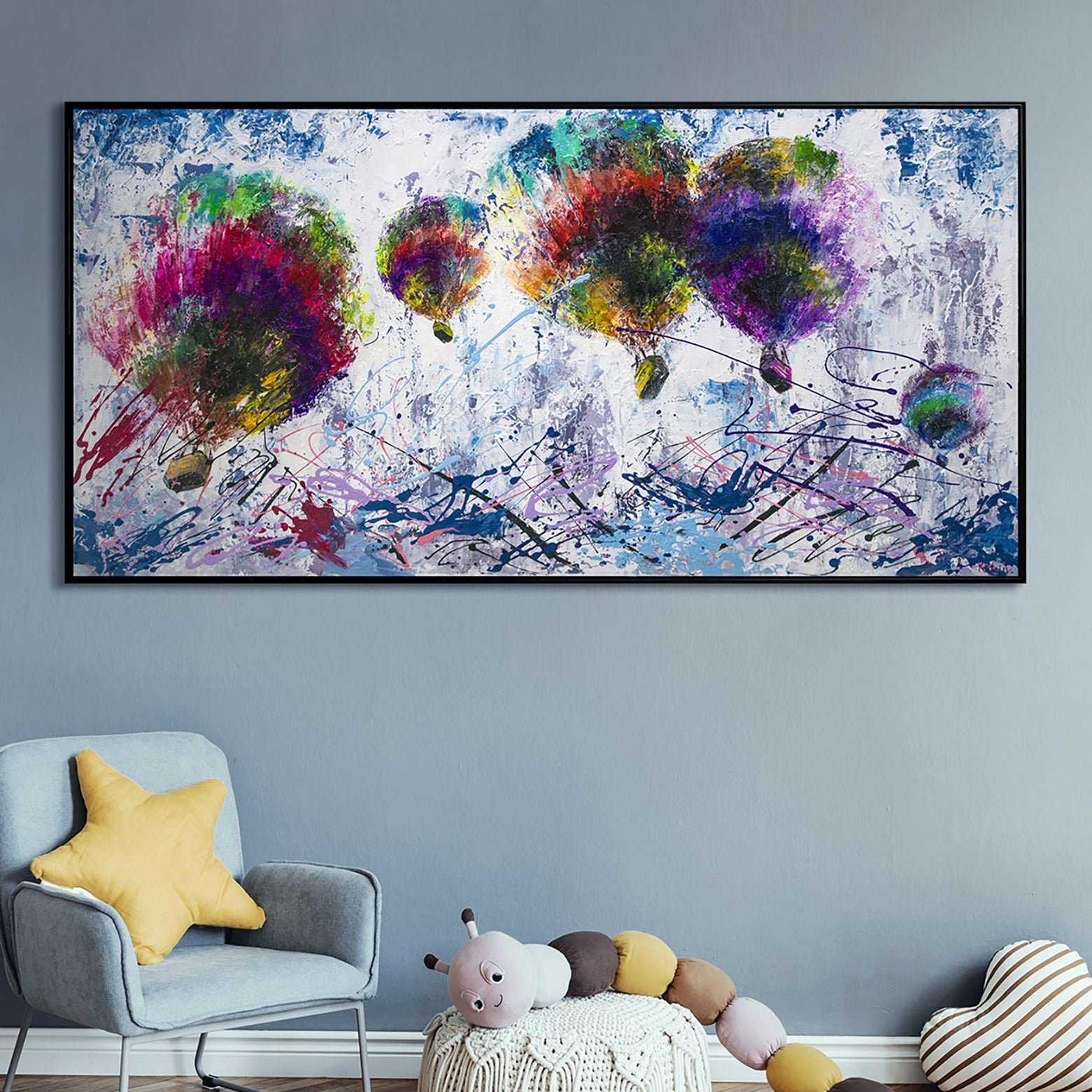 Ein Gemälde mit Luftballons passt perfekt in das Innere einer Stadtwohnung oder eines Landhauses, in ein Wohnzimmer oder ein Arbeitszimmer. Sie erhalten nicht nur ein Gemälde, sondern ein exklusives und einzigartiges Kunstwerk, das von einem talentierten Künstler gemalt wurde.
