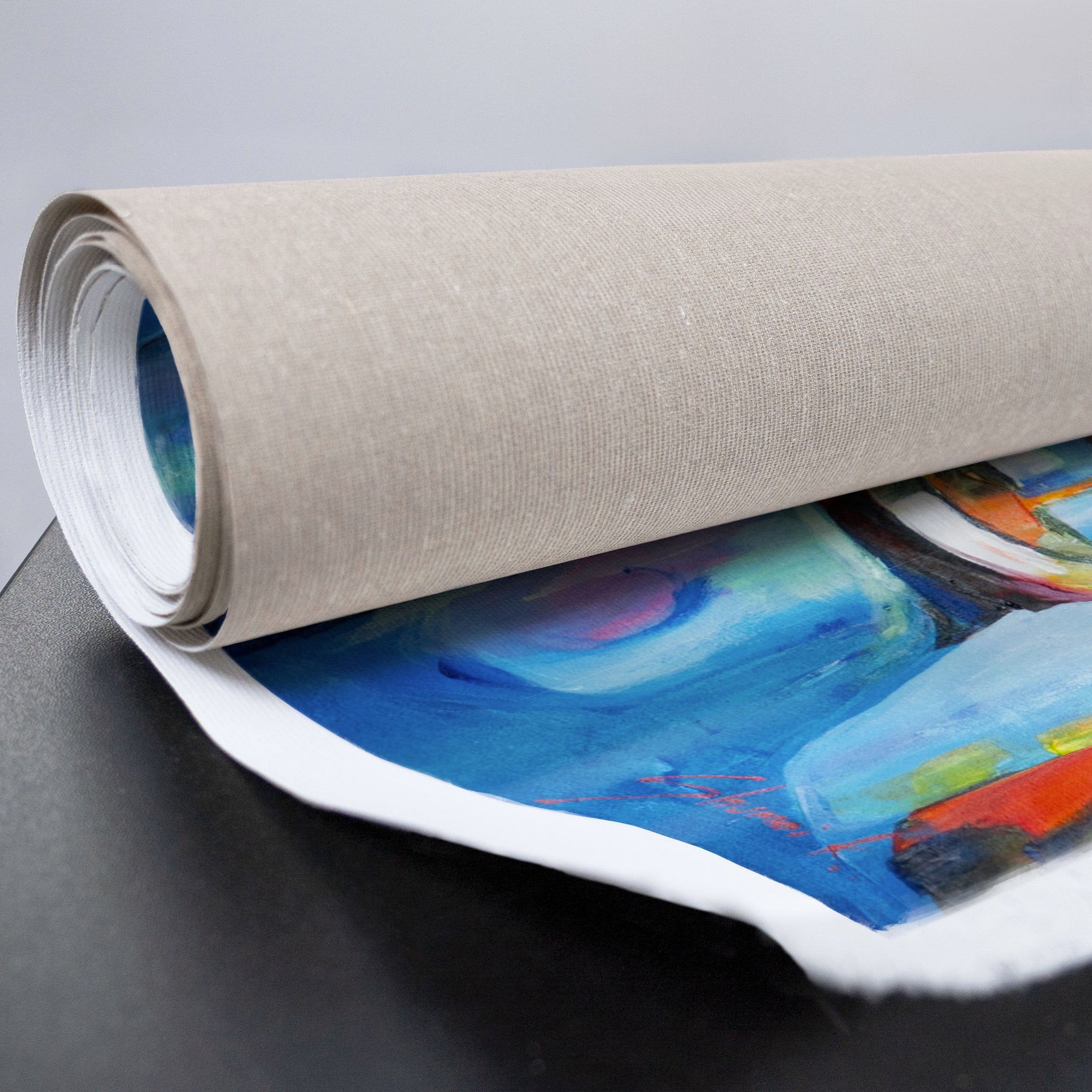 - Gerollt & sicher verpackt, ohne Rahmen