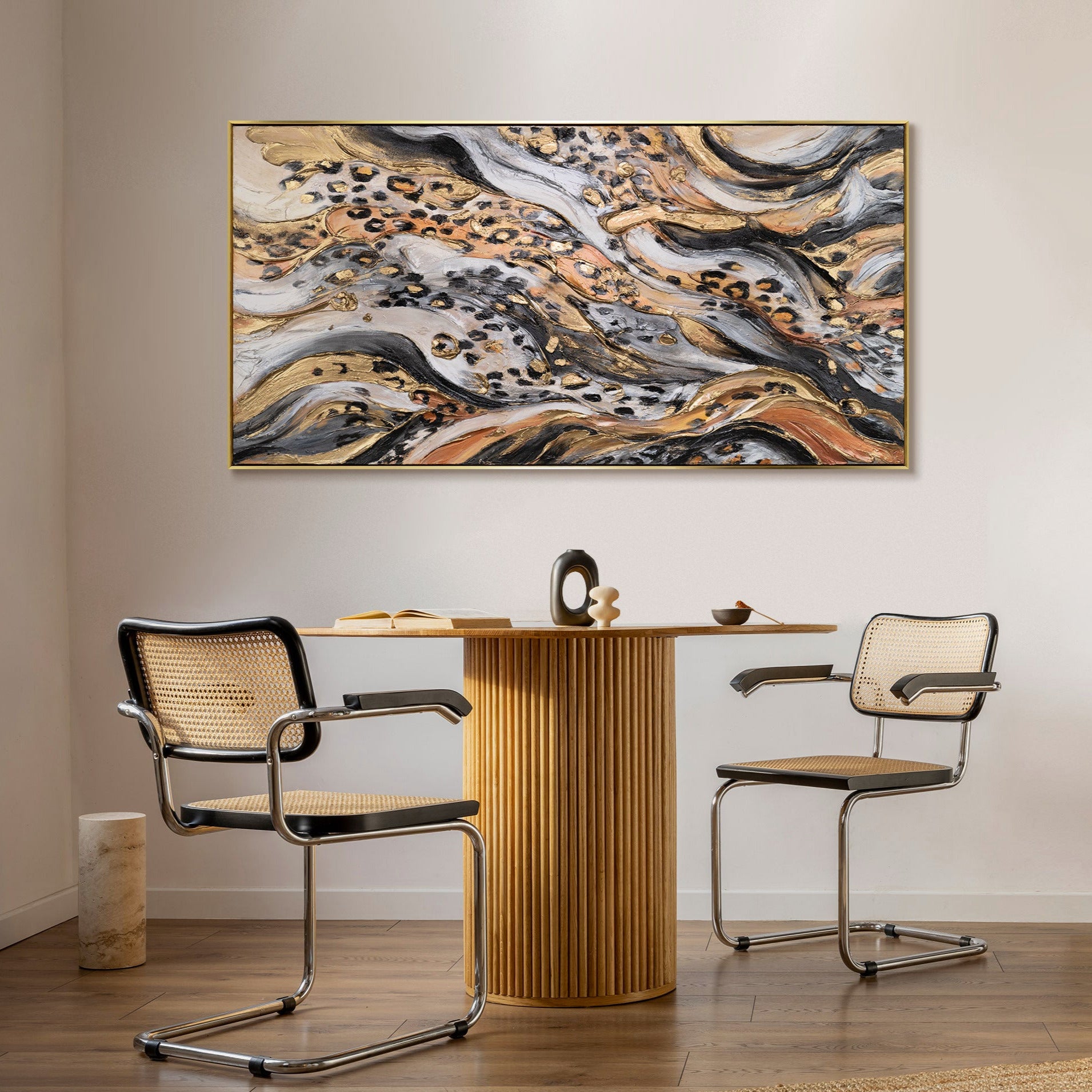 • Motiv: Abstraktes Leopardenmuster mit goldener Struktur