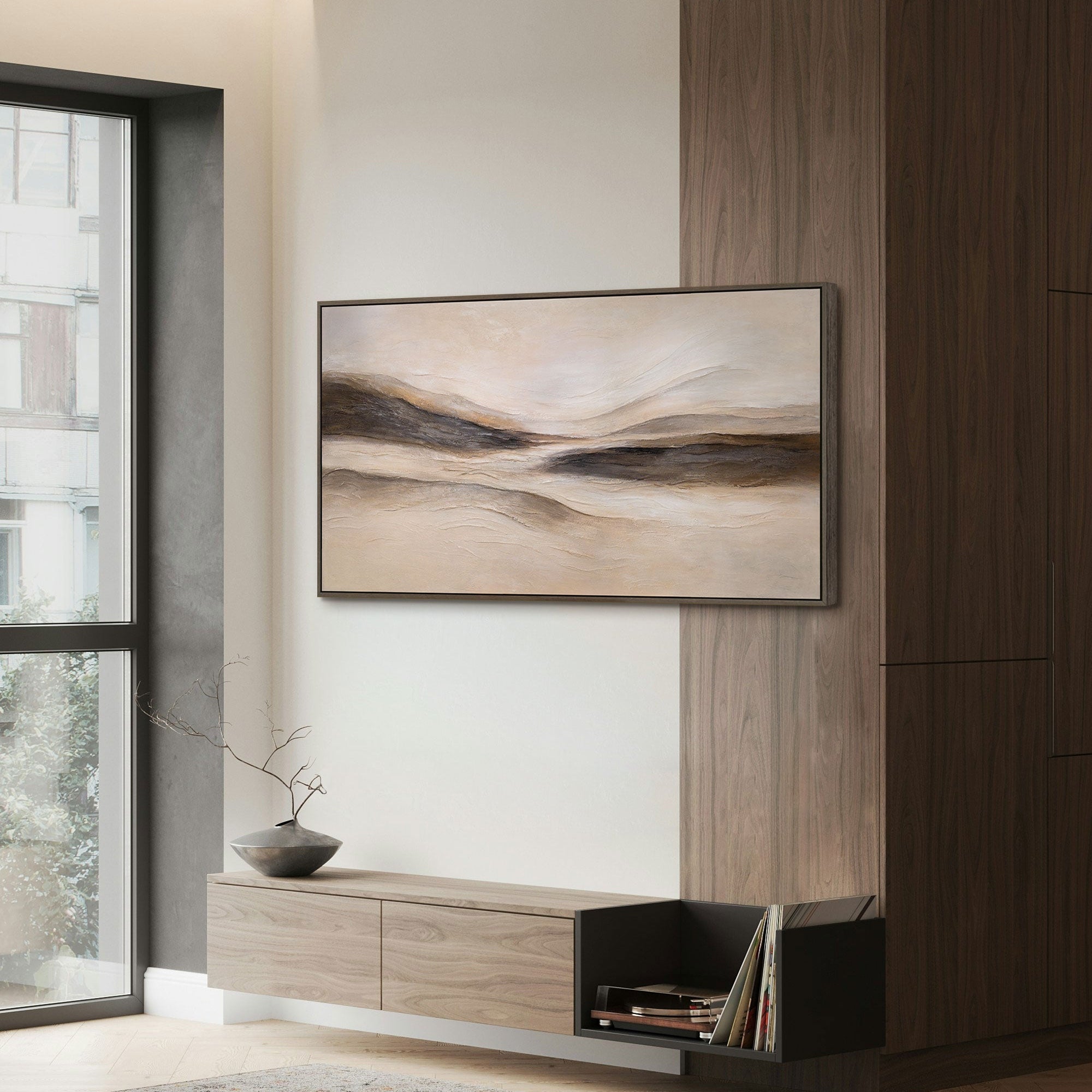 Tableau sur toile encadré « Traces du vent » – Peinture murale réalisée à la main dans des tons naturels