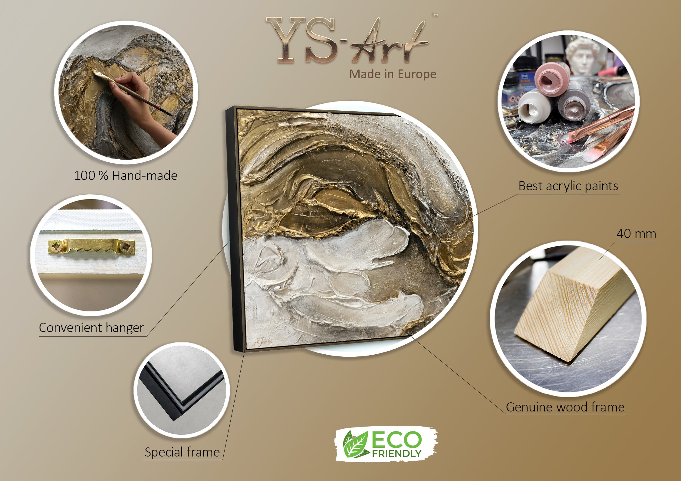 • Materialien: Acryl, Leinwand, Keilrahmen aus Naturholz.