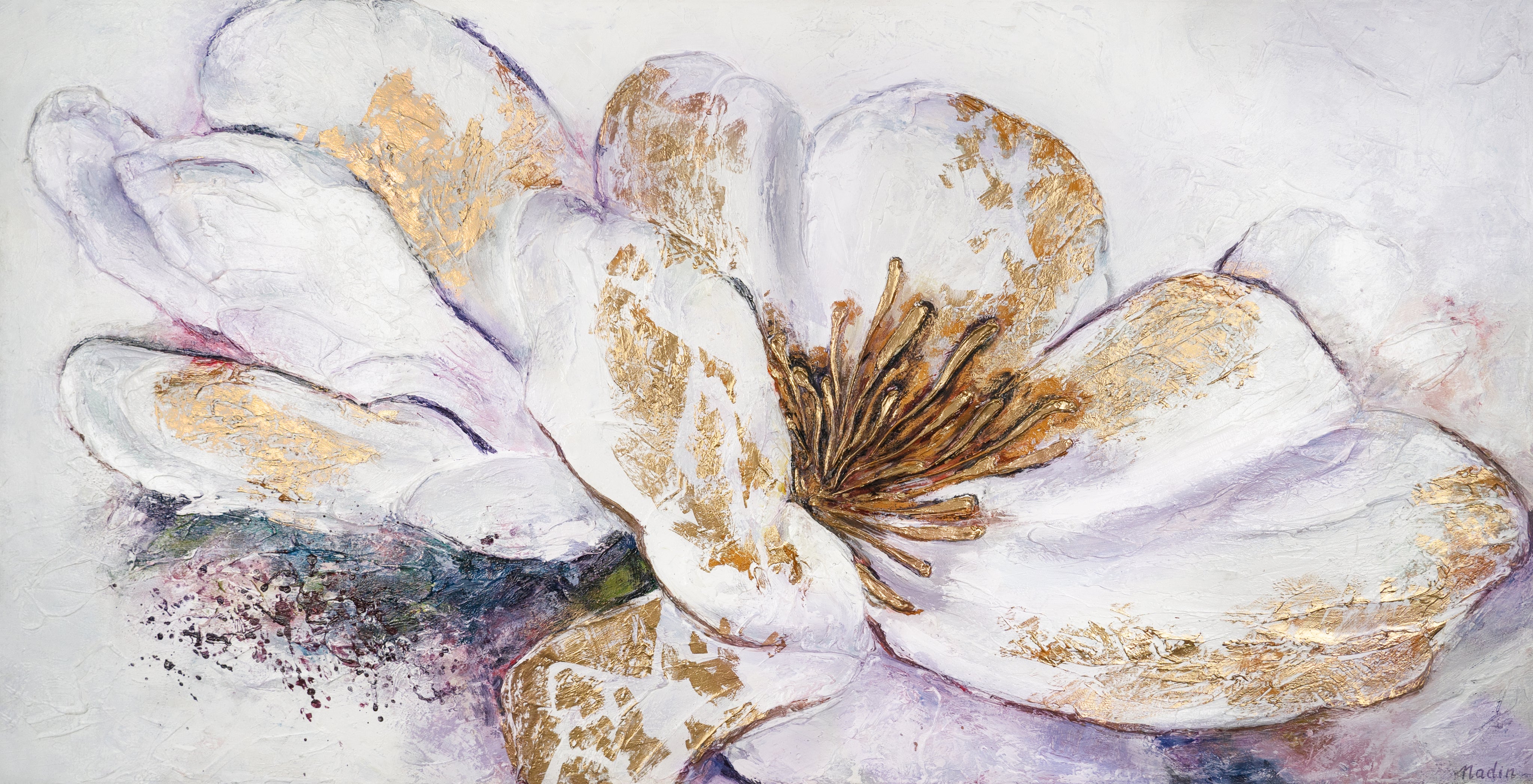 • acrylbilder malen Detail der goldenen Akzente auf Blütenblatt