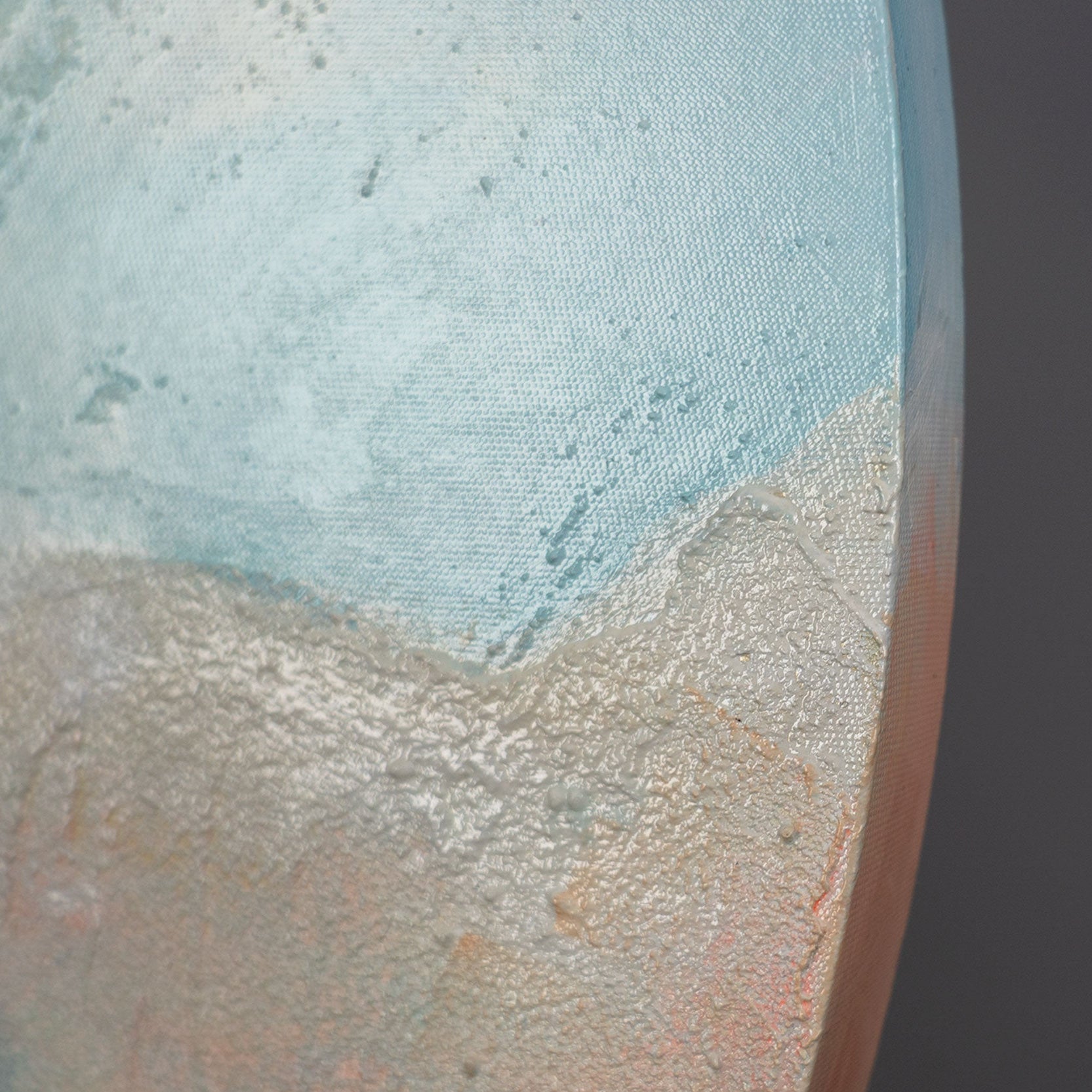 Die strukturierte Oberfläche, harmonische Farbgebung und die runde Form machen das Bild zu einer besonderen Wanddekoration für moderne Kinderzimmer. Jedes Stück ist ein handgemaltes Unikat auf hochwertiger Leinwand.