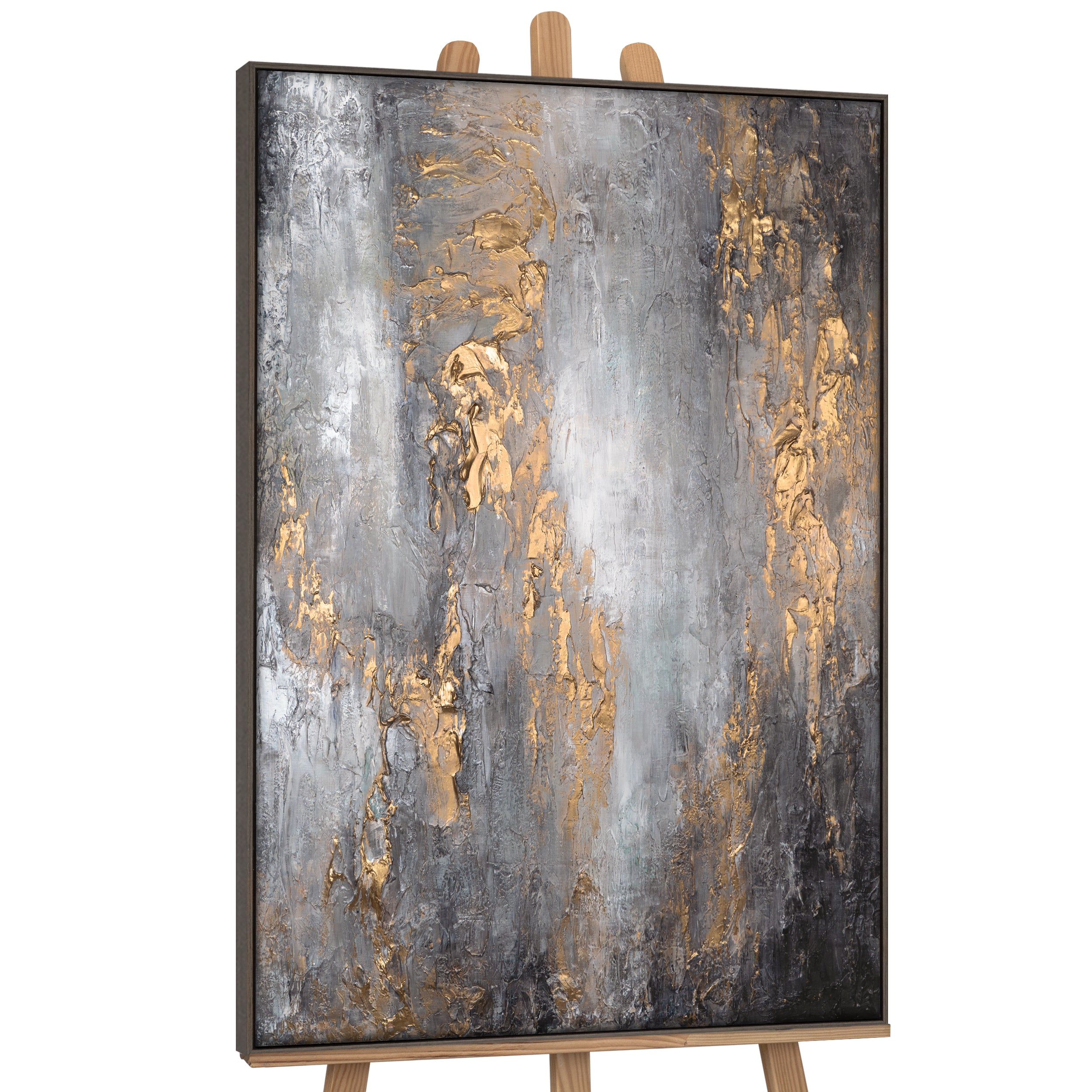 Modernes abstraktes Gemälde auf Leinwand mit Rahmen Milchstraße - Goldene Strömungen