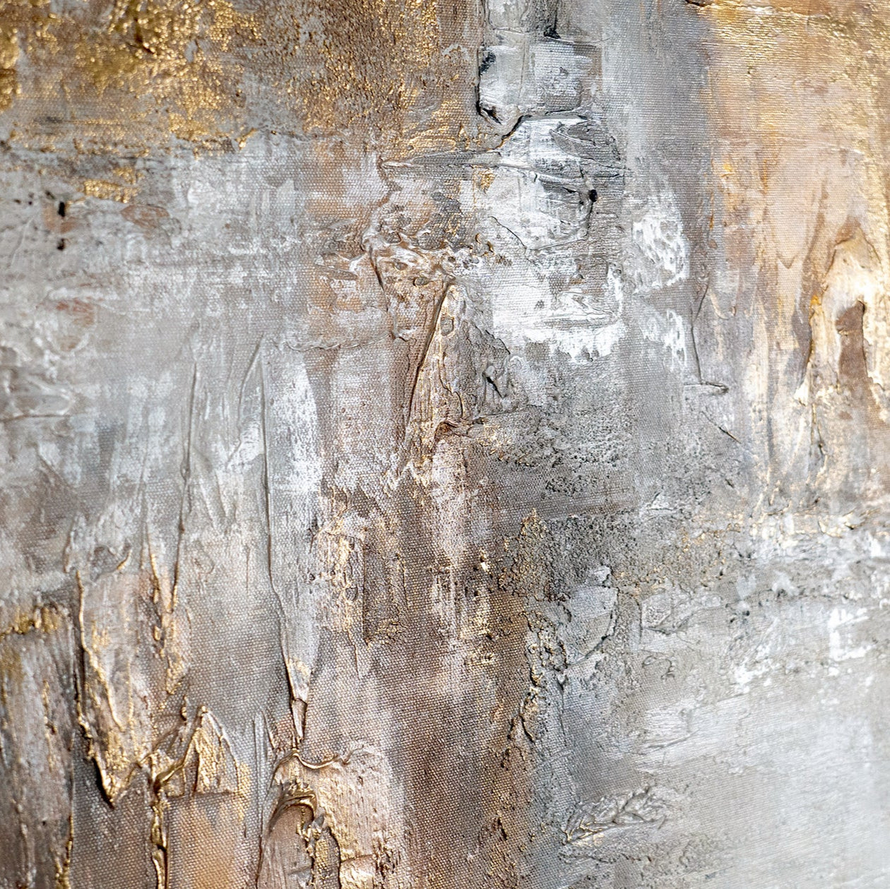 • Strukturkunst Gold Grau Acrylmalerei abstraktes Leinwandbild