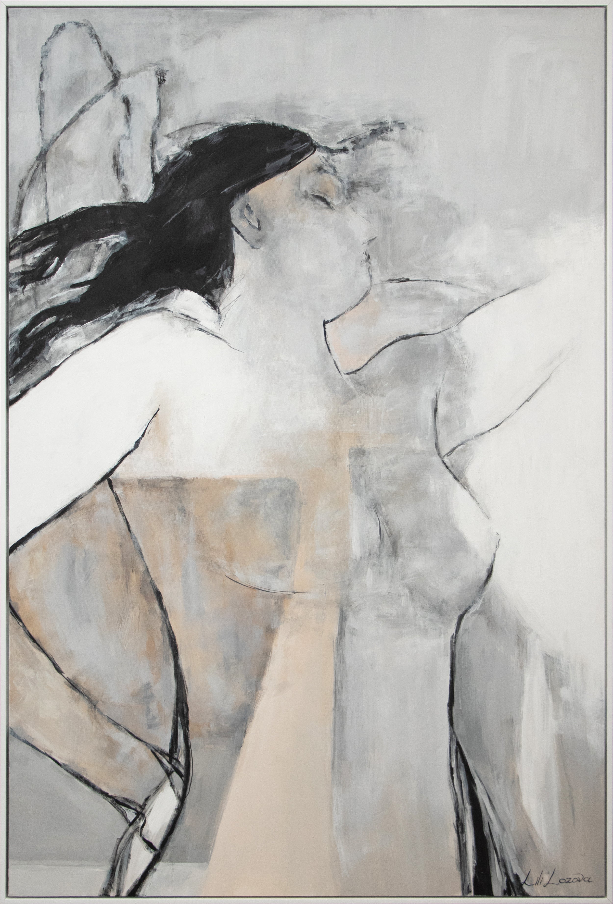 • Gemälde abstrakte Frau in Beige und Grau auf Leinwand