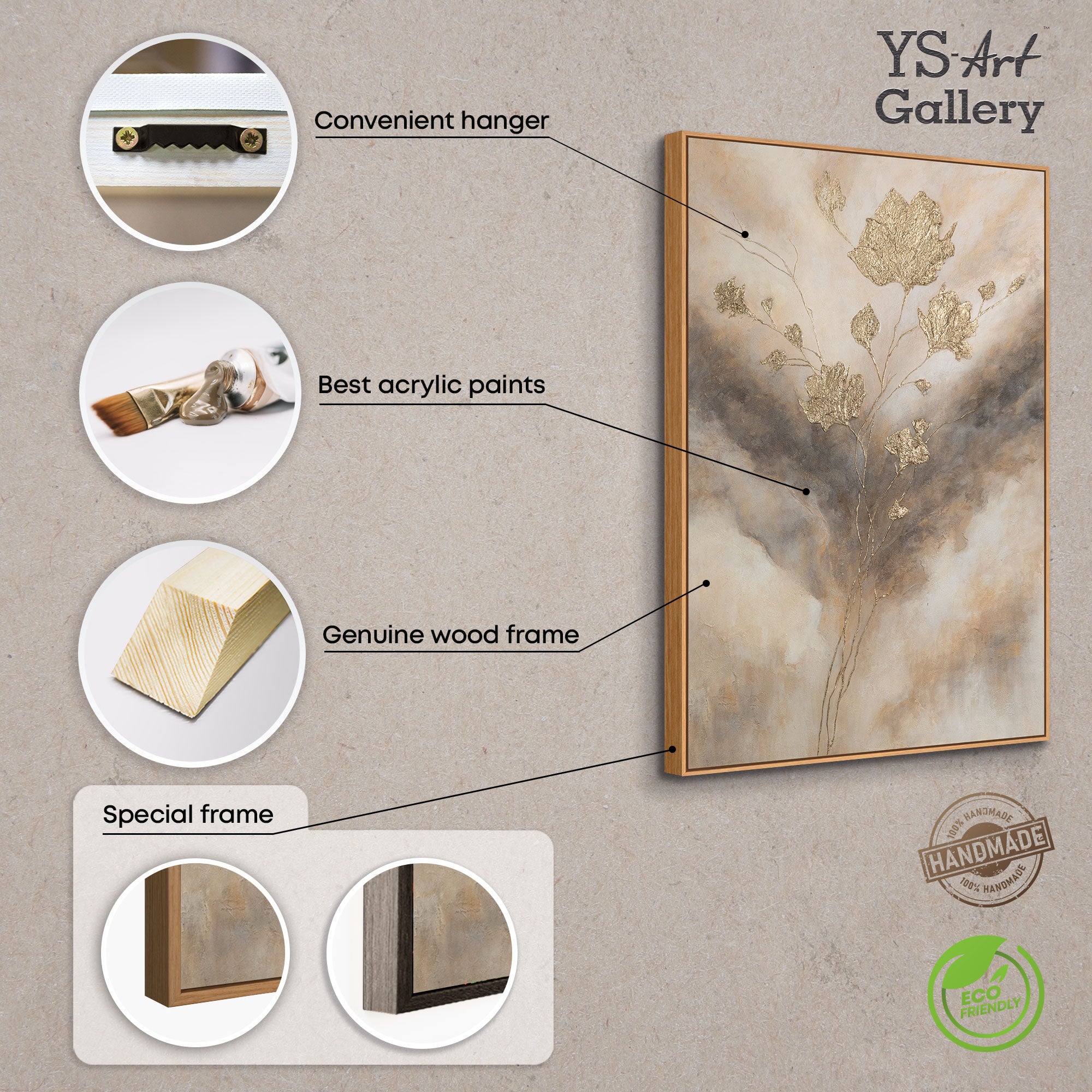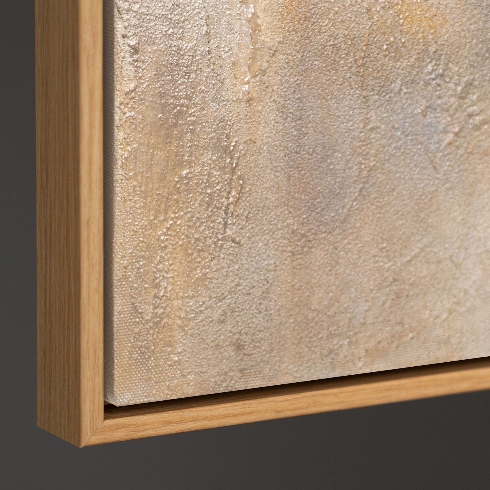 « Lueur dans les nuages » est une élégante peinture acrylique réalisée à la main, qui dégage une aura luxueuse grâce à ses douces nuances de beige, de gris et de subtiles touches dorées. Sa texture en relief ajoute profondeur et dynamisme, conférant à l'œuvre une élégance singulière.
