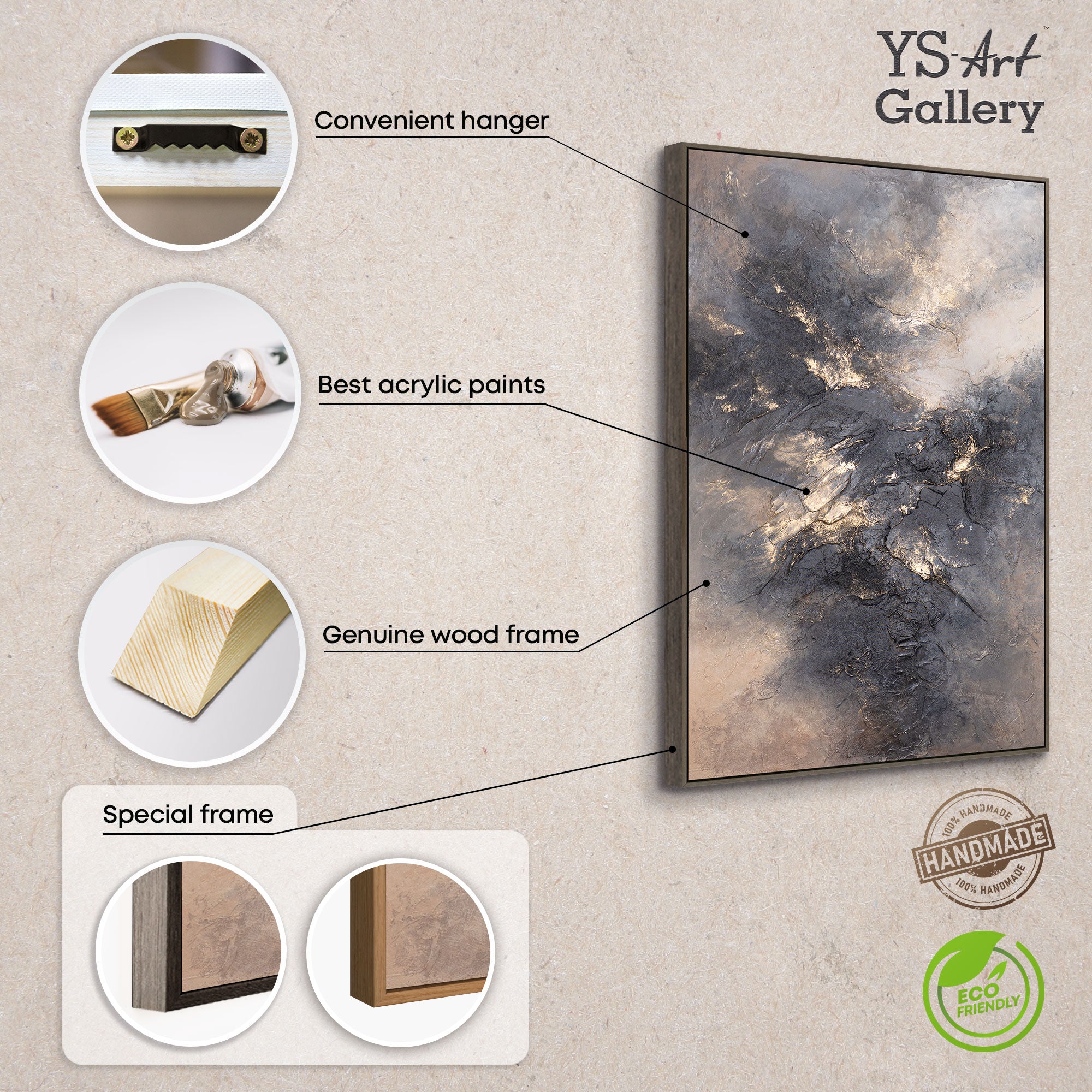 Ce tableau abstrait s'intègre parfaitement aux styles d'intérieur modernes, élégants et minimalistes. Il apporte une atmosphère expressive au salon, à la chambre ou au bureau et devient le point focal de votre décoration murale.