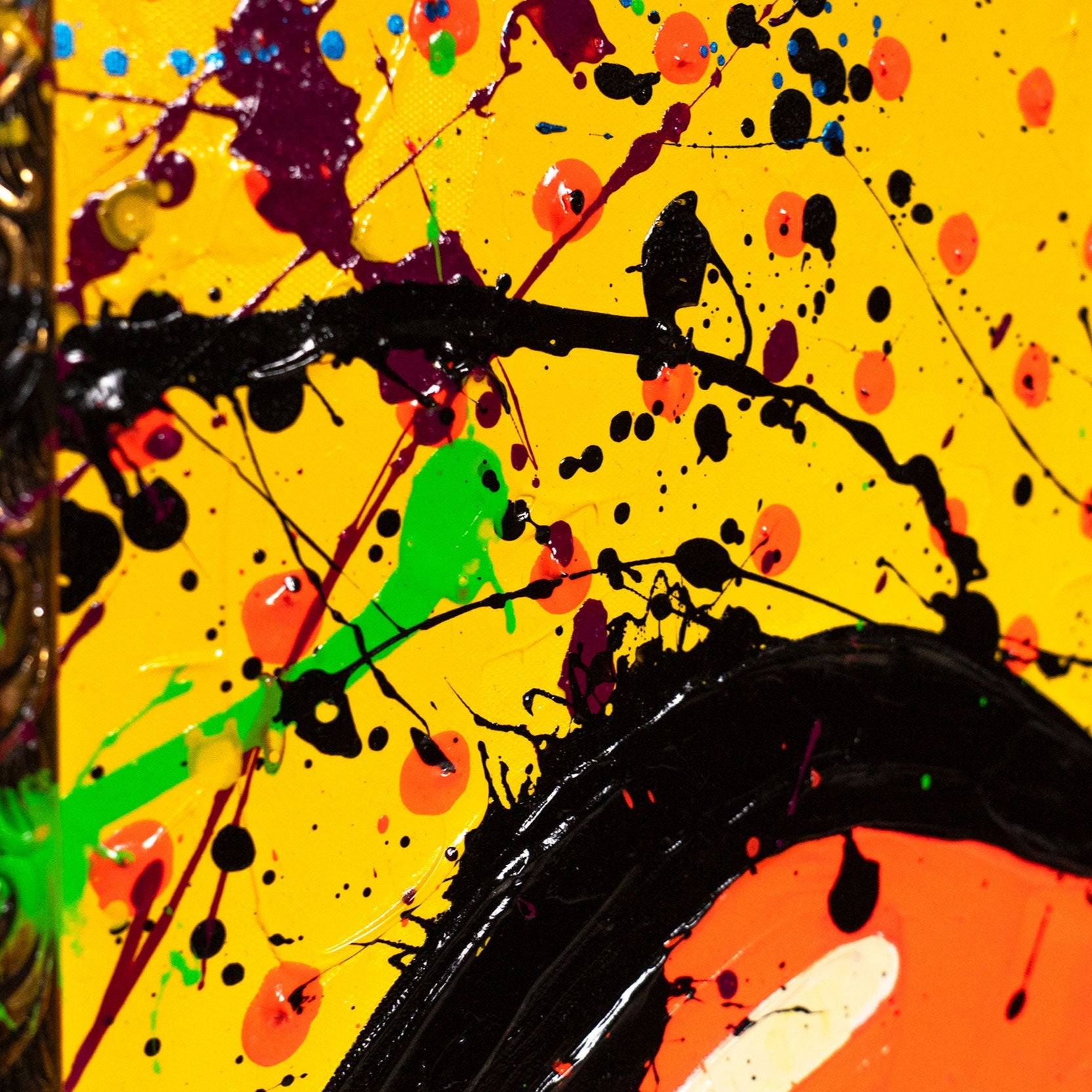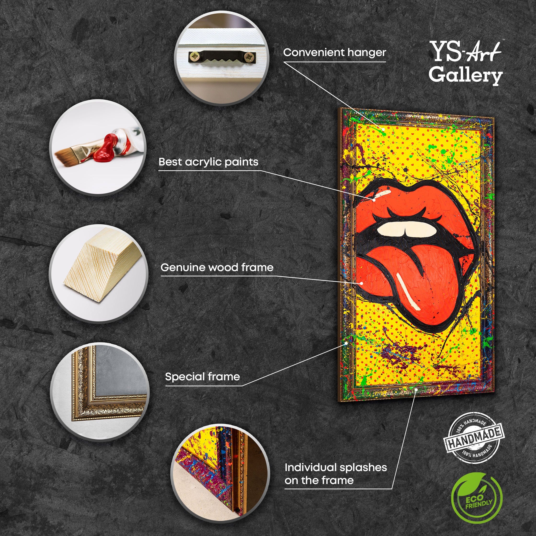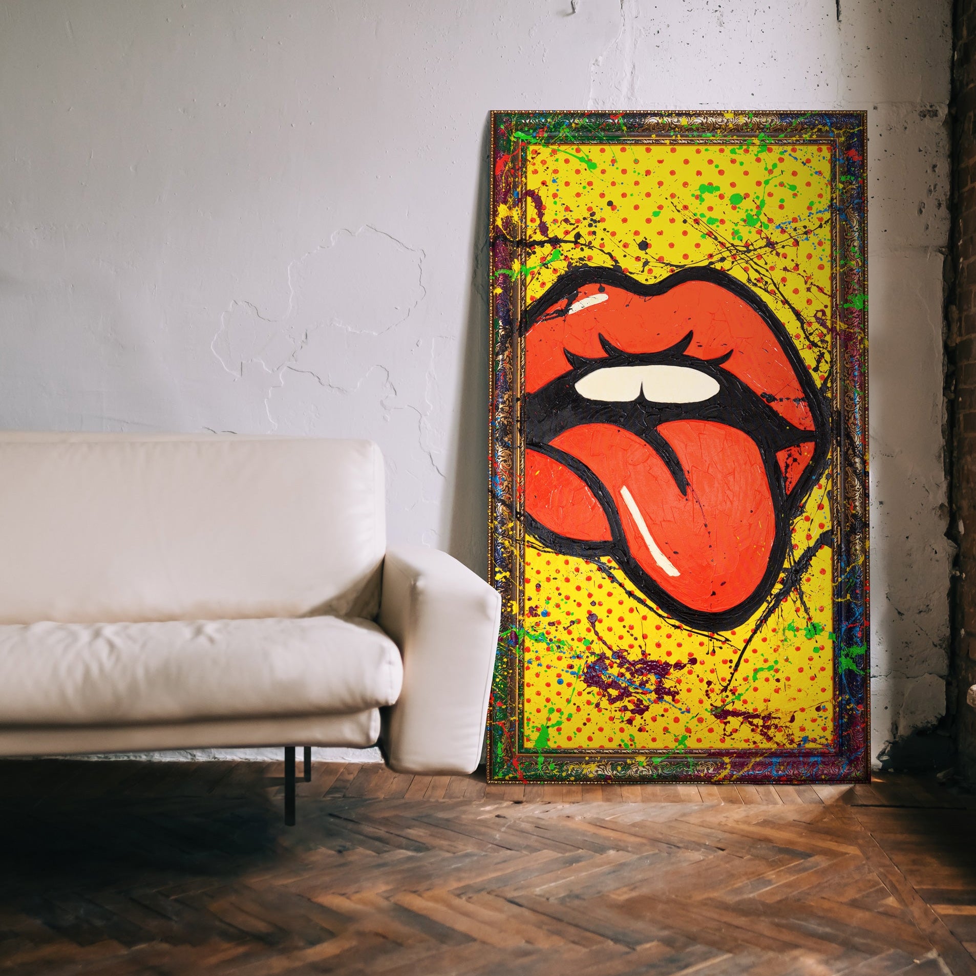 Handgemaltes Wandbilder Wohnzimmer – Abstrakte Kunst mit Pop-Art Mund „WOW“