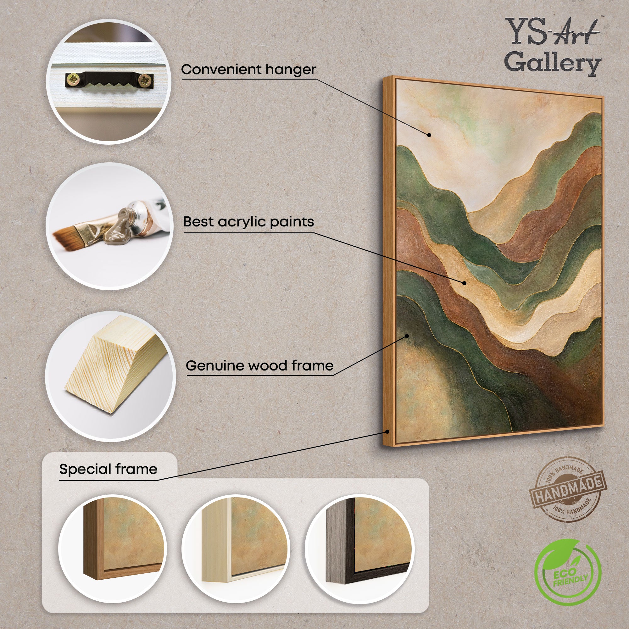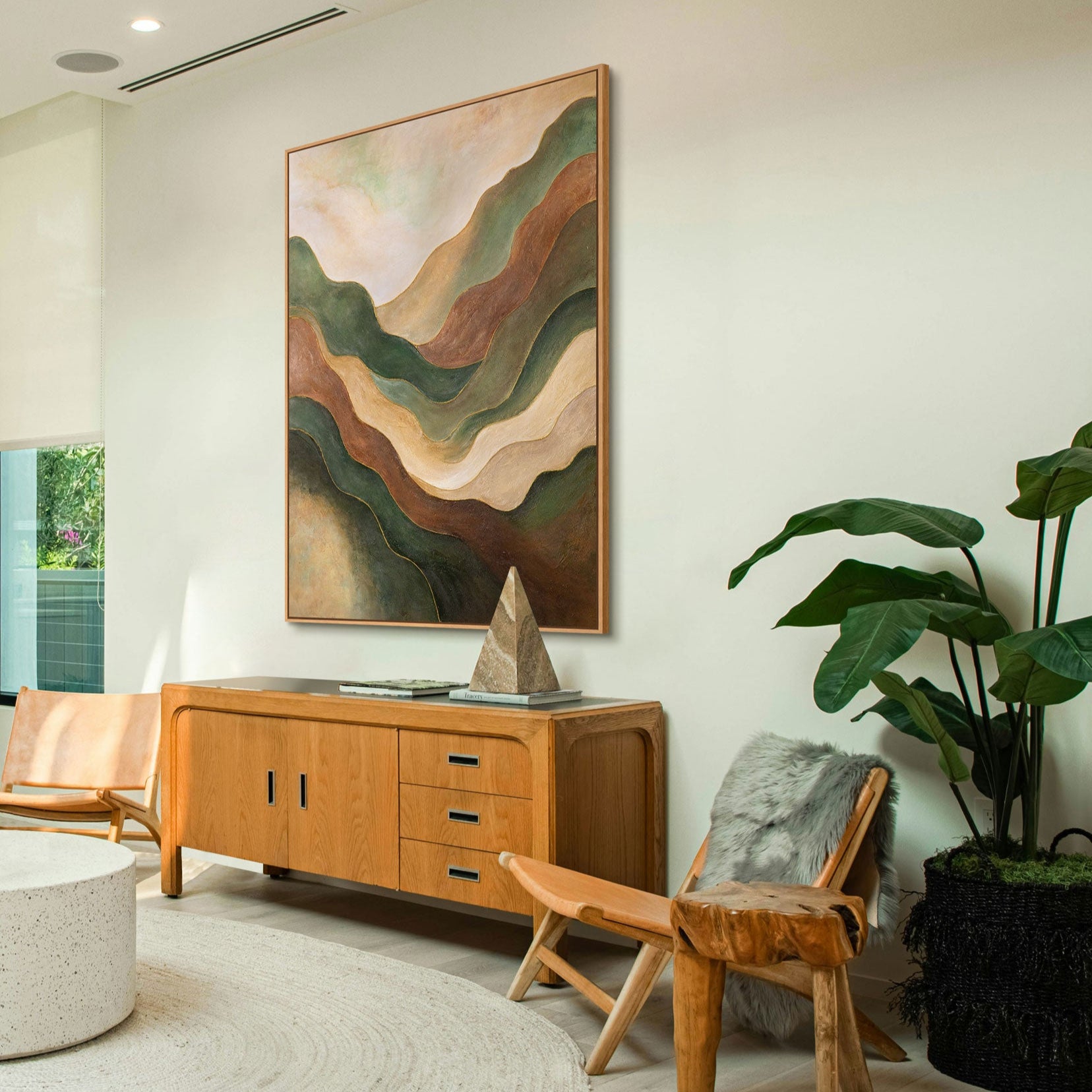 Cette peinture abstraite sur toile s'intègre parfaitement dans des intérieurs modernes, scandinaves ou classiques. Elle apporte une aura chaude et terreuse au salon, à la chambre ou au bureau, créant une atmosphère apaisante qui capte l'œil et équilibre l'espace.