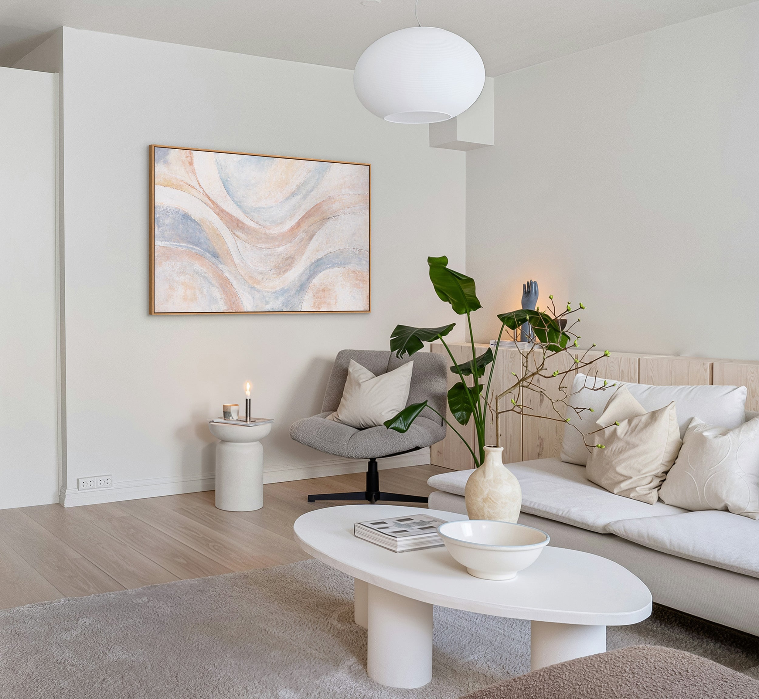 Cette peinture abstraite s'intègre parfaitement dans des concepts de décoration modernes, scandinaves et minimalistes. Que ce soit dans le salon, la chambre ou le bureau, elle crée une atmosphère calme et élégante. Chaque tableau est une œuvre unique peinte à la main.