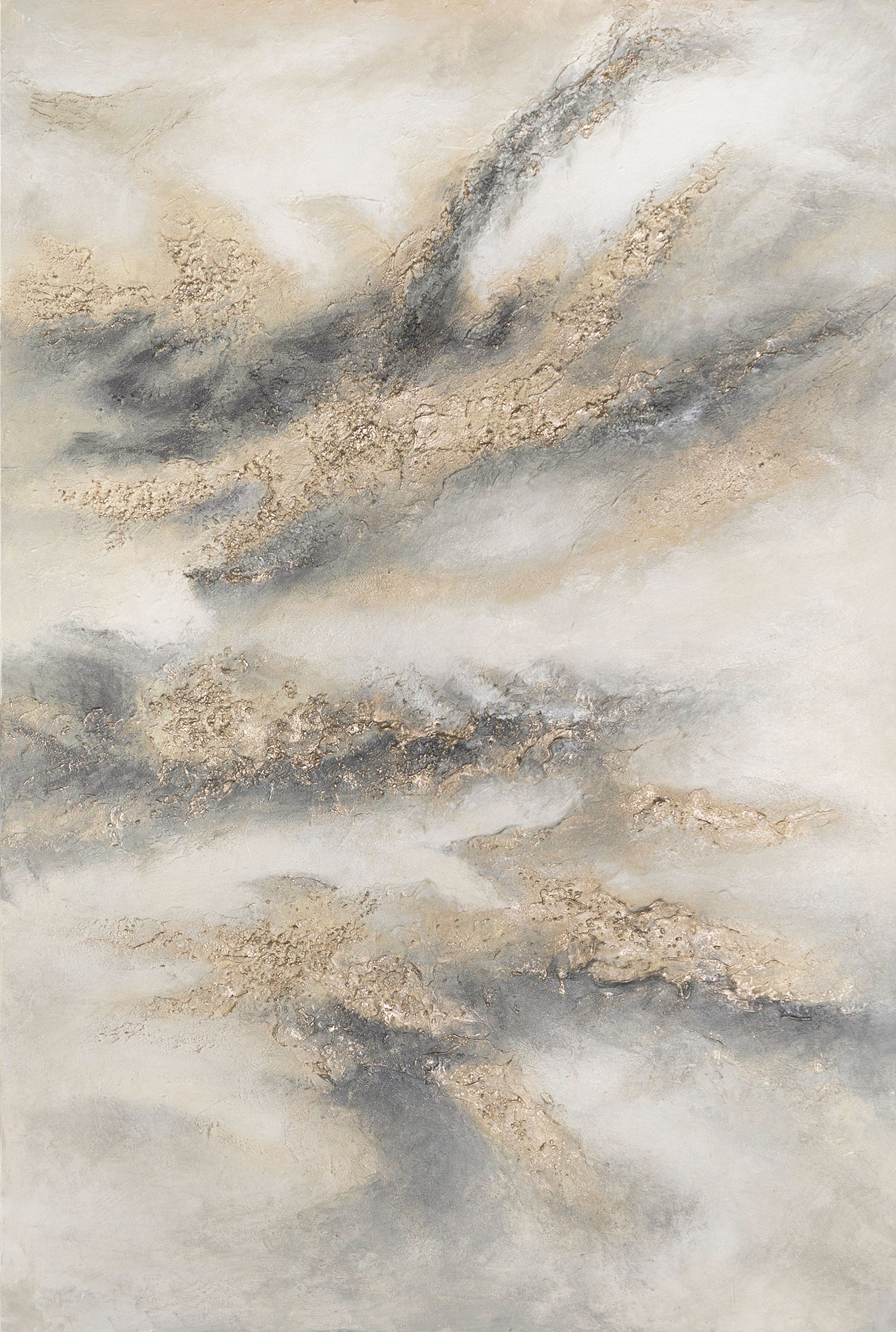 Peinture acrylique peinte à la main en gris et or – Décoration murale abstraite "Mélodie des Nuages"
