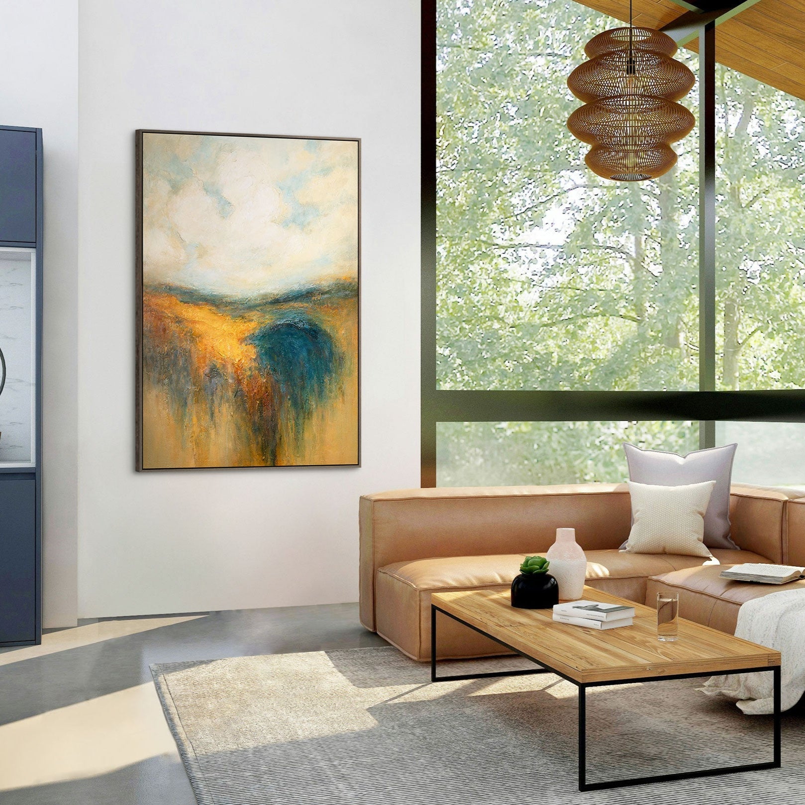 Cette peinture expressive sur toile s'intègre parfaitement aux styles d'intérieur modernes, scandinaves et classiques. Elle apporte une chaleur douce au salon, à la chambre ou au bureau, et apporte une sensation de liberté et de vastitude à l'espace.