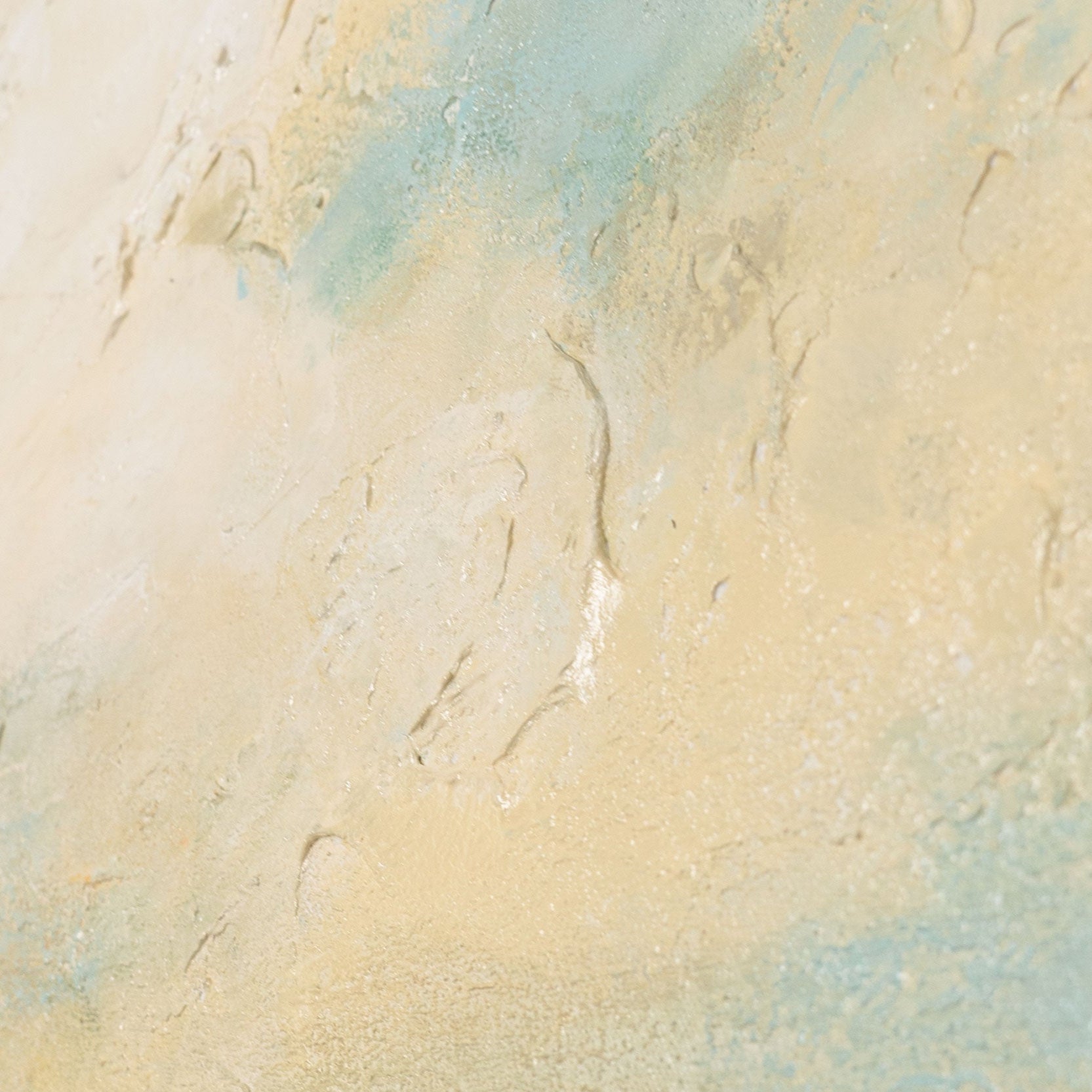 "Grandeur Dorée" est une peinture acrylique fascinante, réalisée à la main, qui capture la beauté d'un paysage ouvert dans des couleurs riches et lumineuses. La composition contrastée de l'or éclatant, du bleu profond et des teintes douces de beige et de vert crée une atmosphère pleine de profondeur et de mouvement.