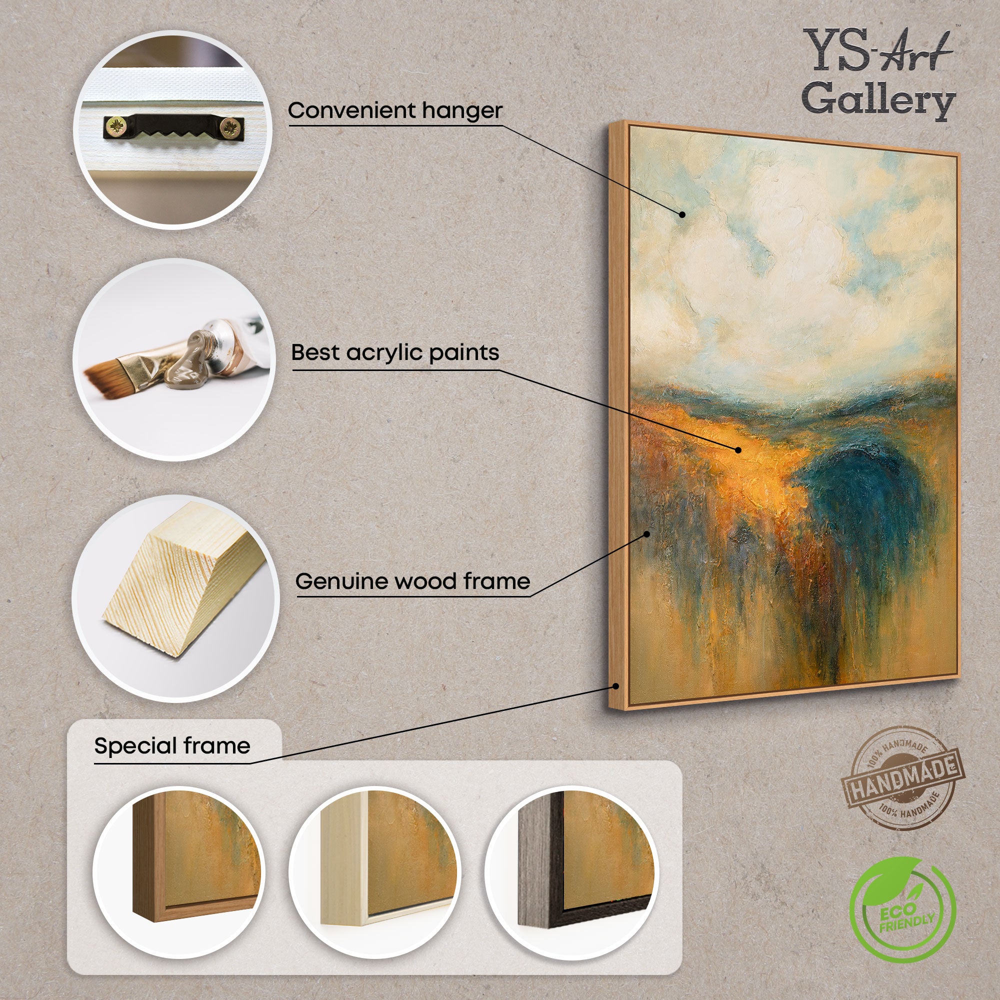 "Grandeur Dorée" combine profondeur, texture et couleurs éclatantes pour créer une œuvre d'art unique qui apporte élégance et une atmosphère particulière à chaque pièce.