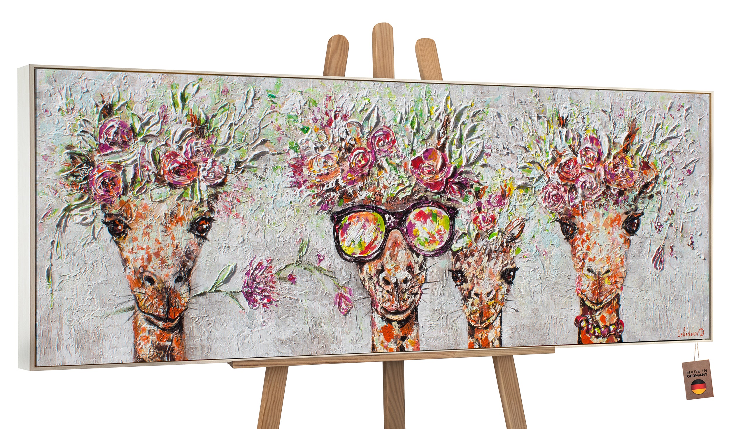 Acryl gemälde handgemalt mit Rahmen "Giraffen" 150x50cm