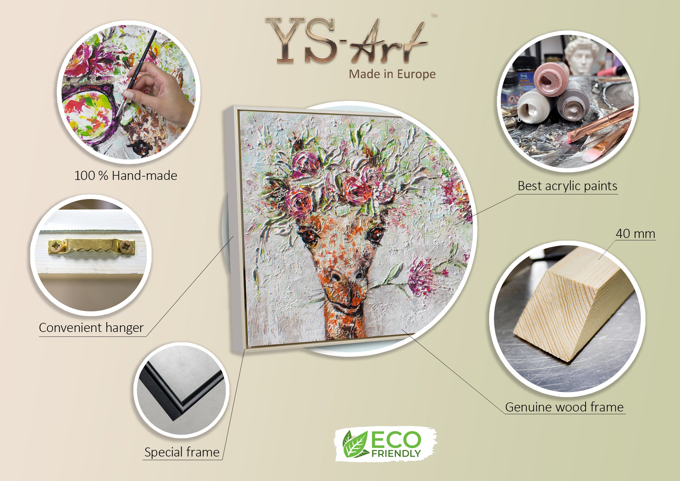 - Materialien: Acryl, Leinwand, Keilrahmen aus Naturholz.