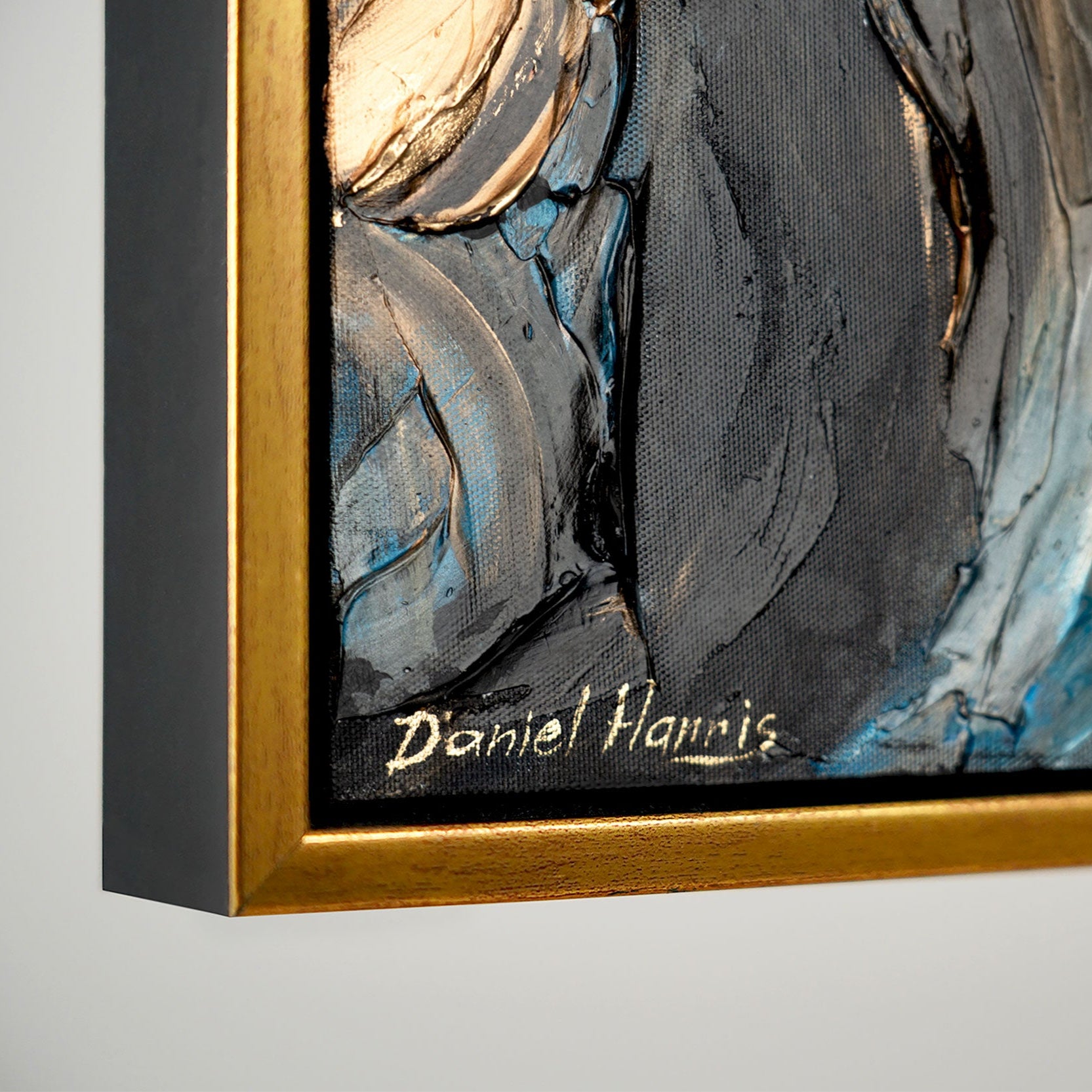 • Signatur Detail – Löwenbild auf Leinwand mit Struktur