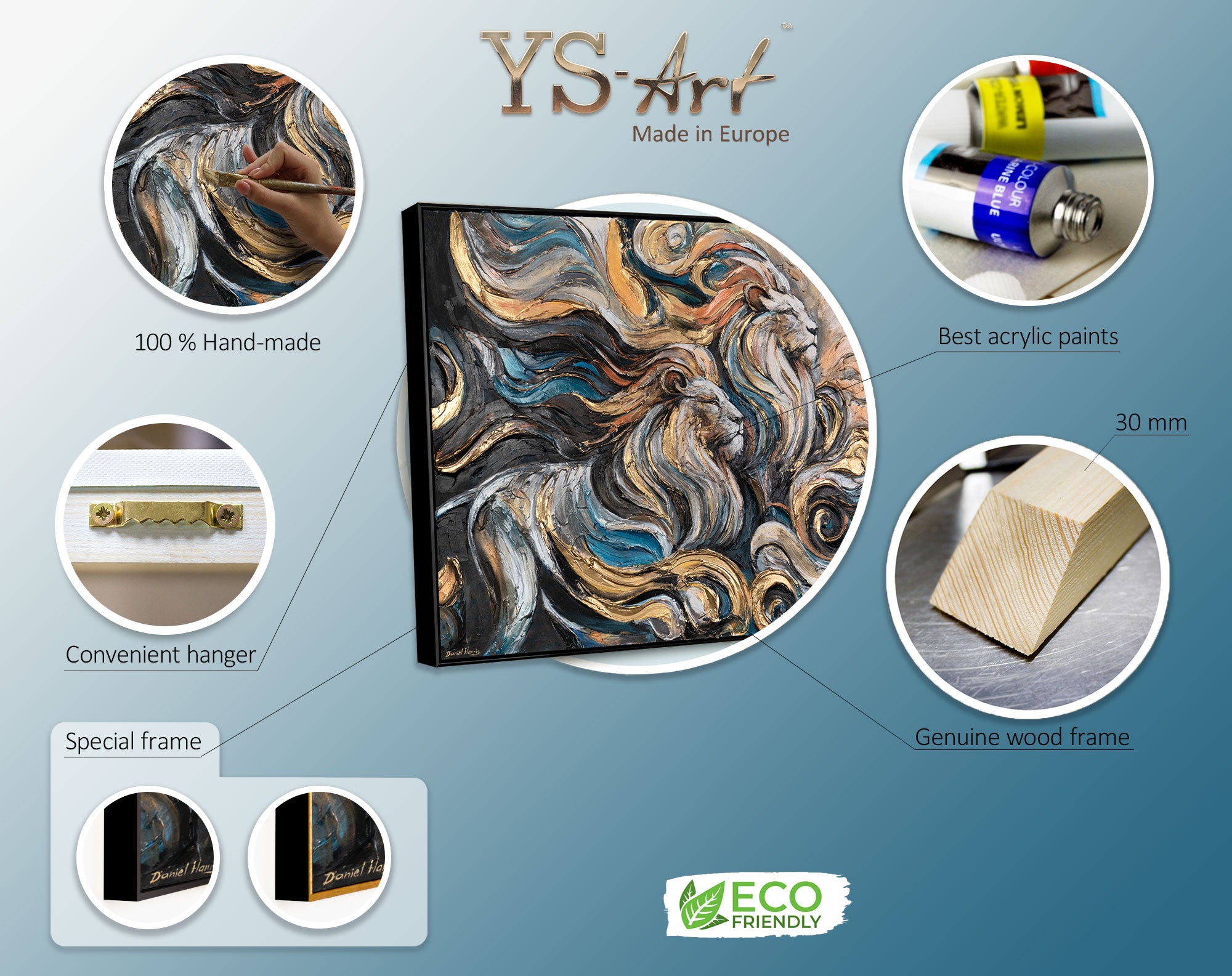 • Acrylbilder auf Leinwand – Handgemalte abstrakte Kunst mit Löwenmotiv "Dynastie der Stärke"