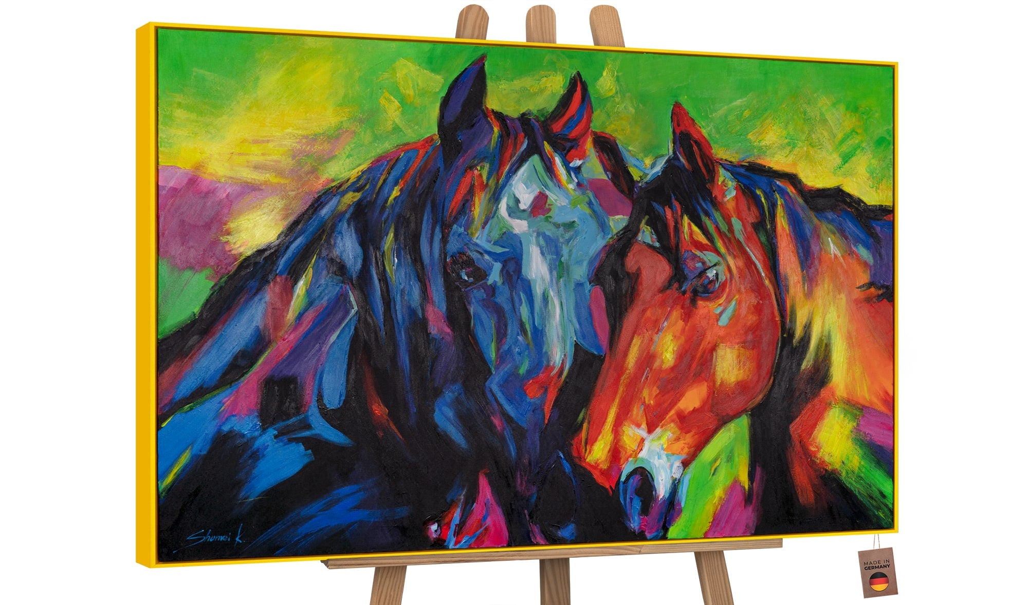 • Gemälde handgemalt Acrylmalerei für das Wohnzimmer mit Rahmen "Vielfarbige Mähnen"