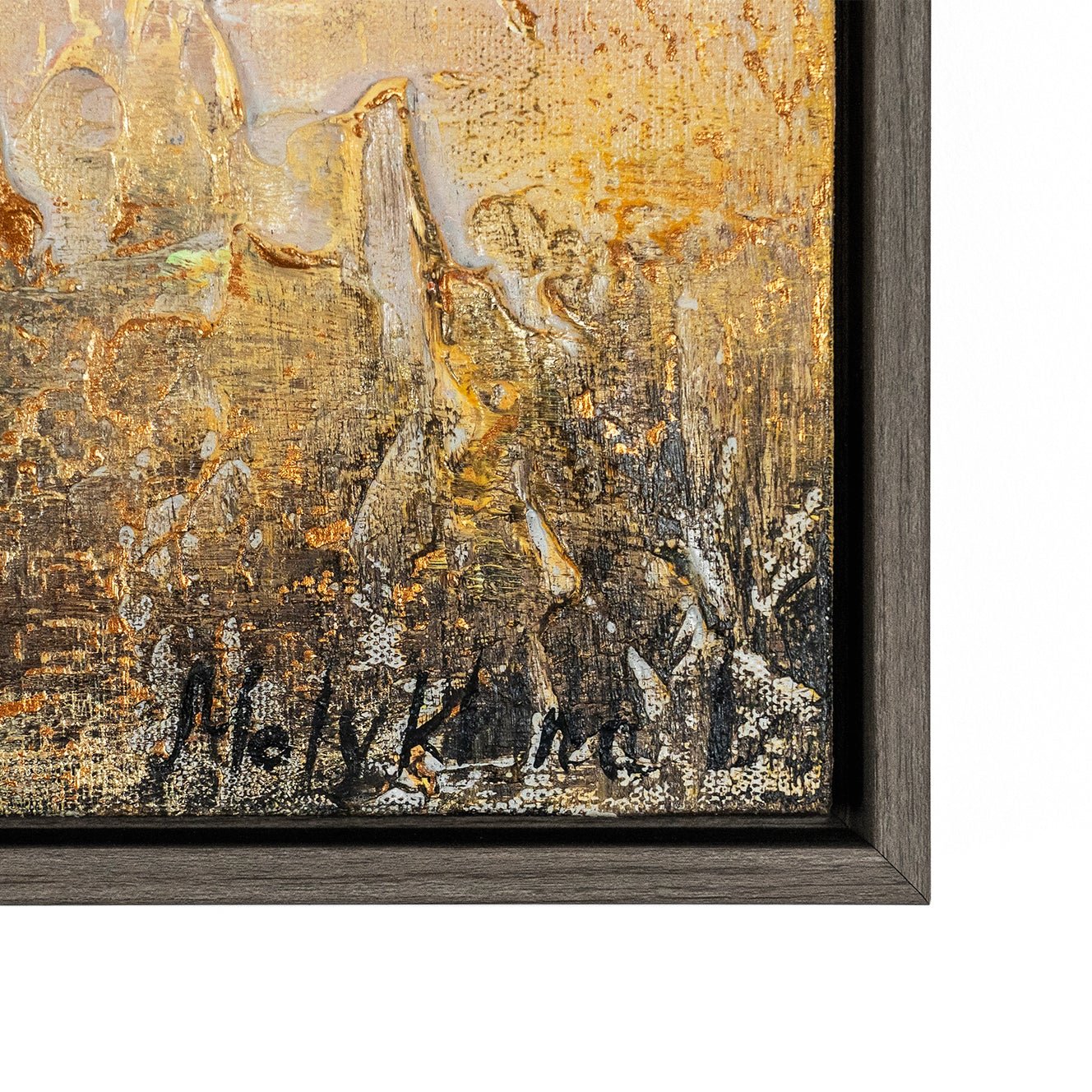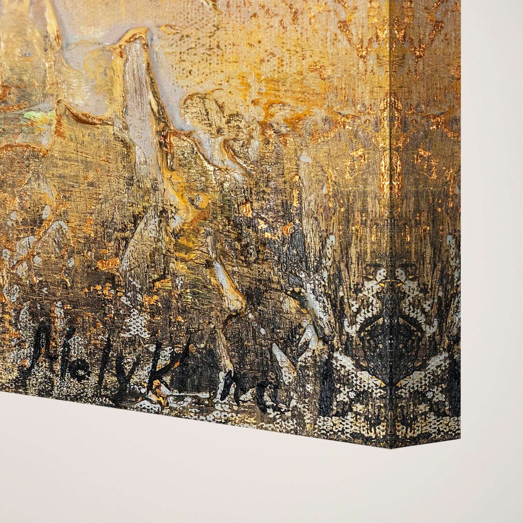 • Abstrakte Acrylmalerei auf Leinwand - Drei Menschen mit Regenschirmen im Regen