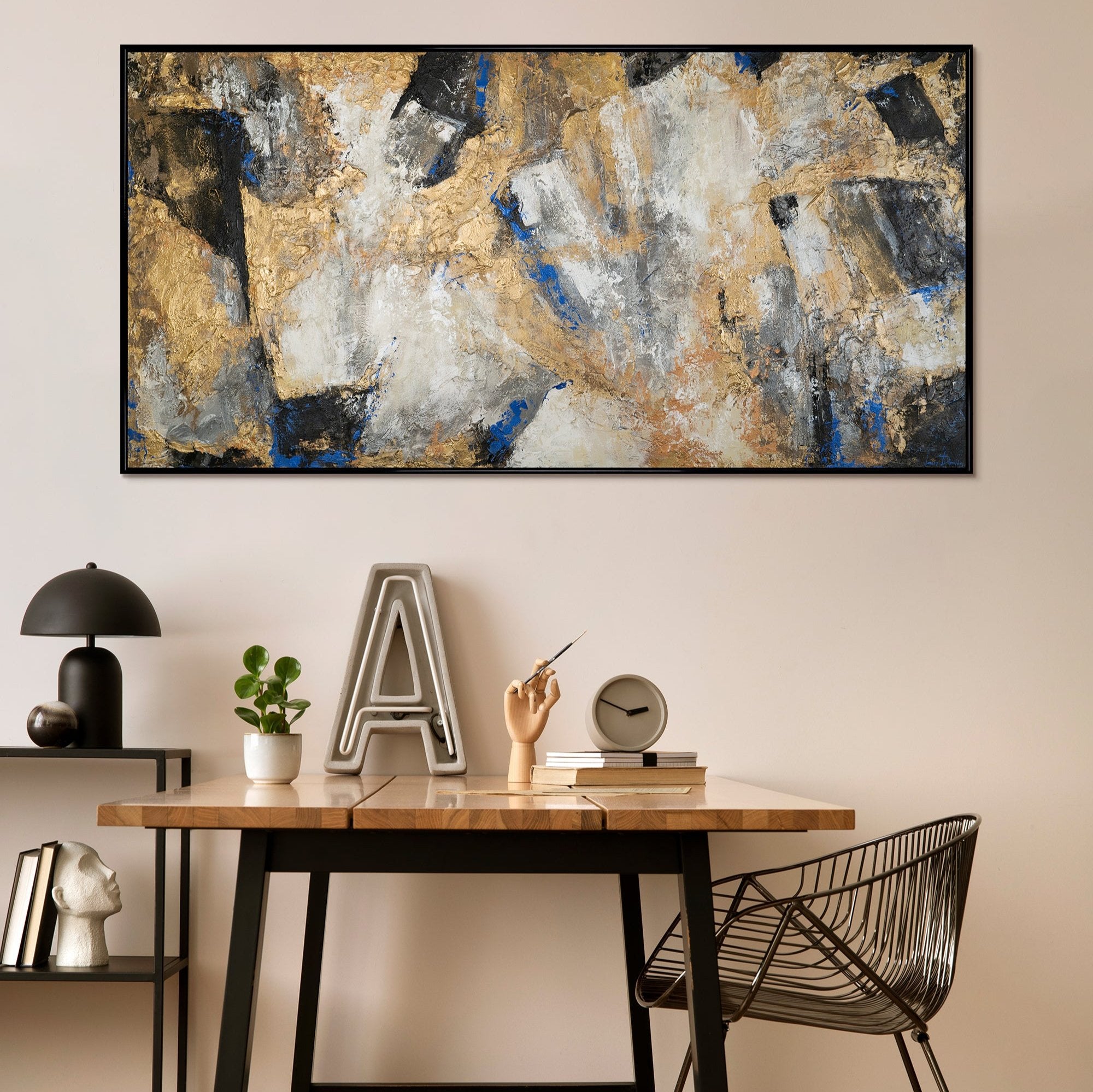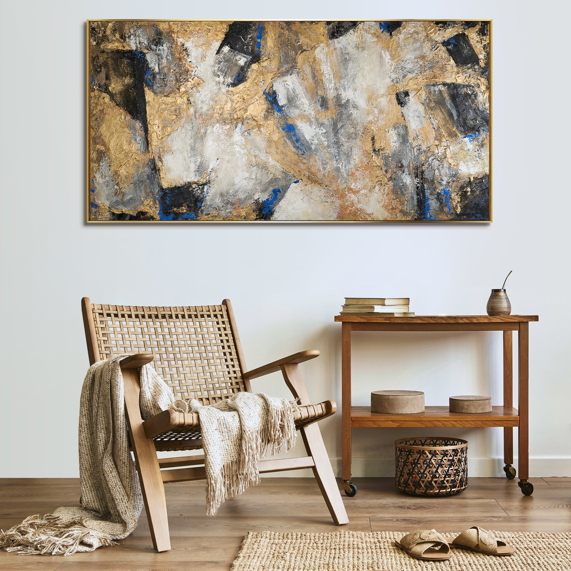 Handgemaltes Acrylbild mit Rahmen Goldener Kontrast Abstrakte Kunst mit Goldakzenten