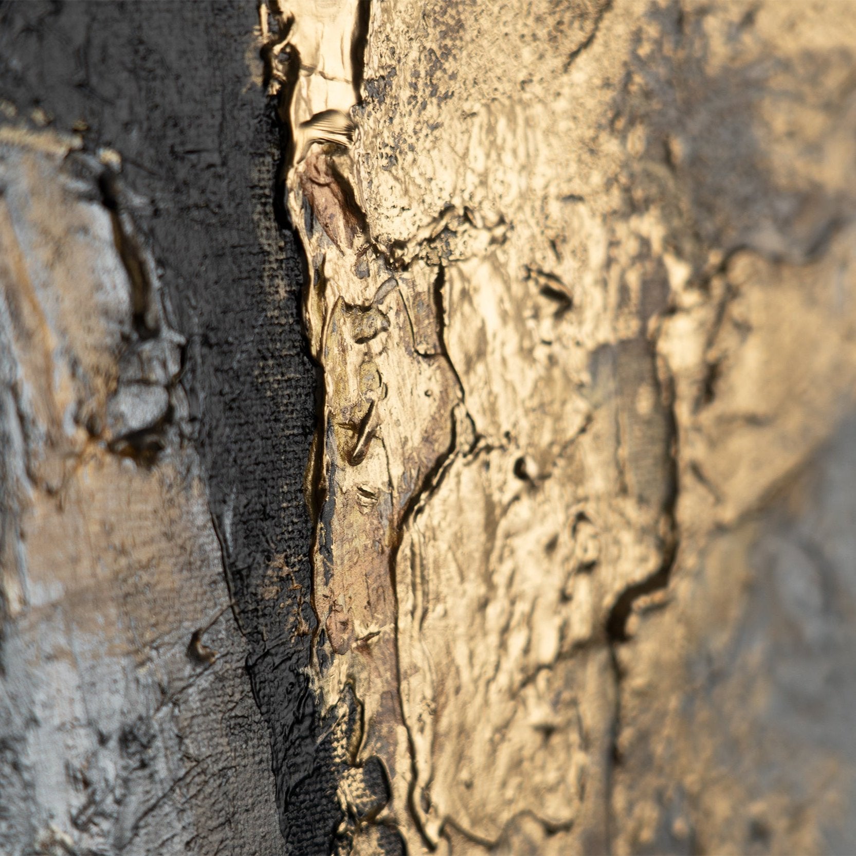 • Abstrakte moderne Malerei Goldener Kontrast Handgemaltes Acrylbild mit goldenen Akzenten mit Rahmen