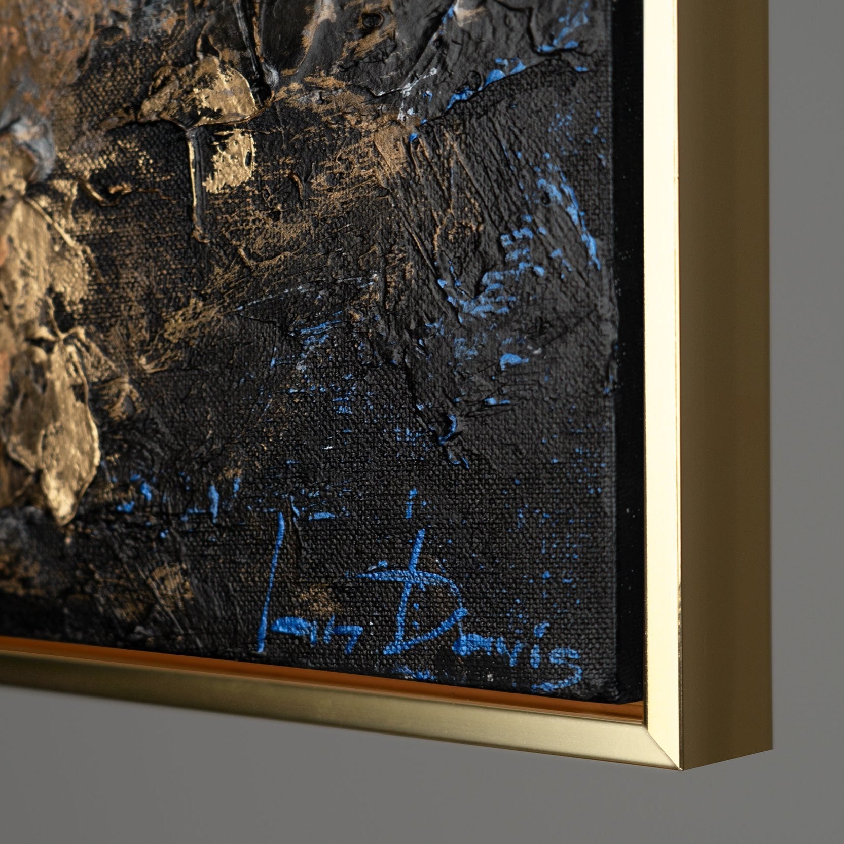 Abstrakte moderne Malerei Goldener Kontrast Handgemaltes Acrylbild mit goldenen Akzenten mit Rahmen