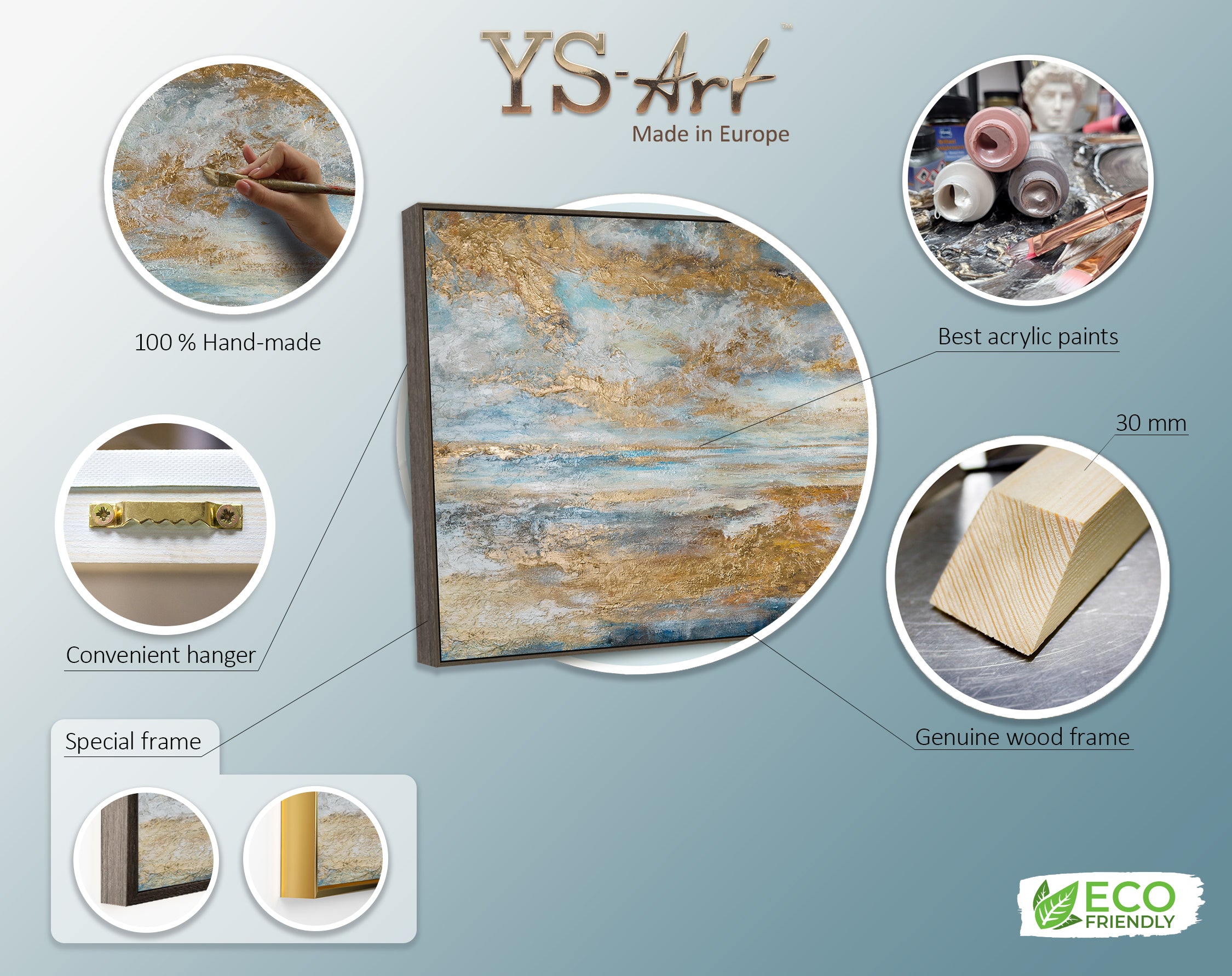 • Material: Leinwand, Acrylfarben, Goldakzente