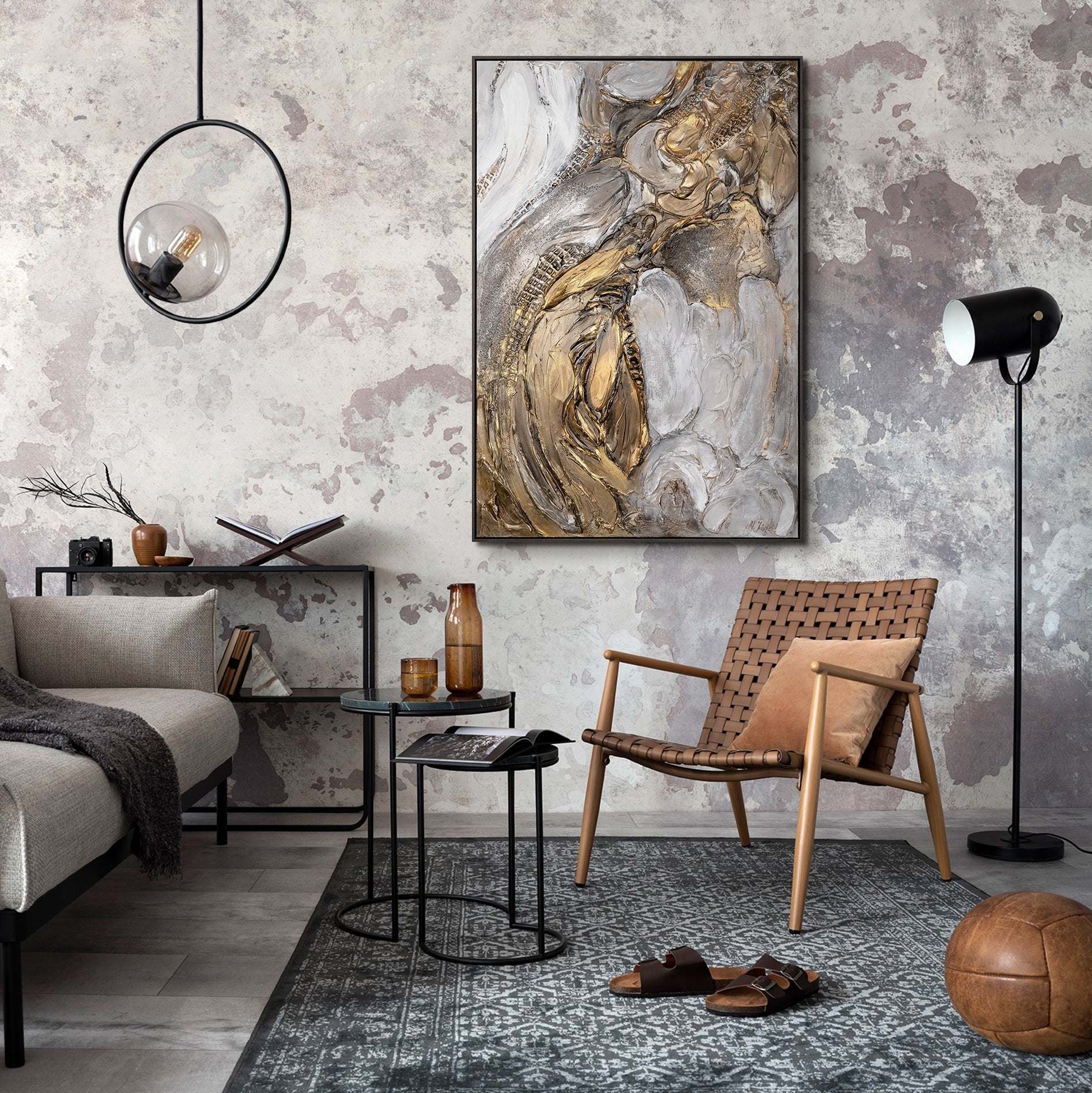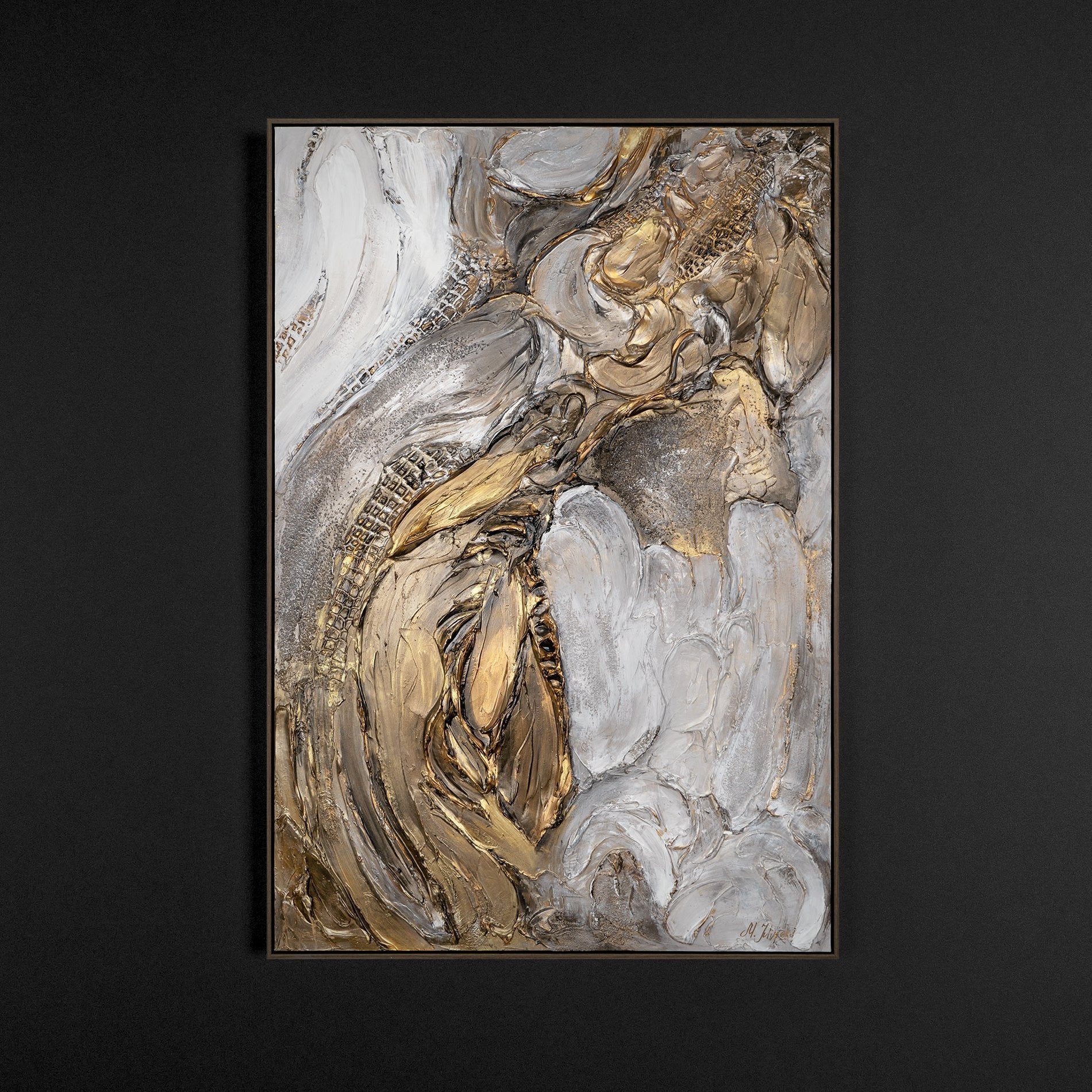 Dieses Gemälde verbindet raffinierte Textur mit luxuriöser Ausstrahlung und schafft eine fesselnde Präsenz, die jeden Raum in Ihrem Zuhause oder Büro bereichert.