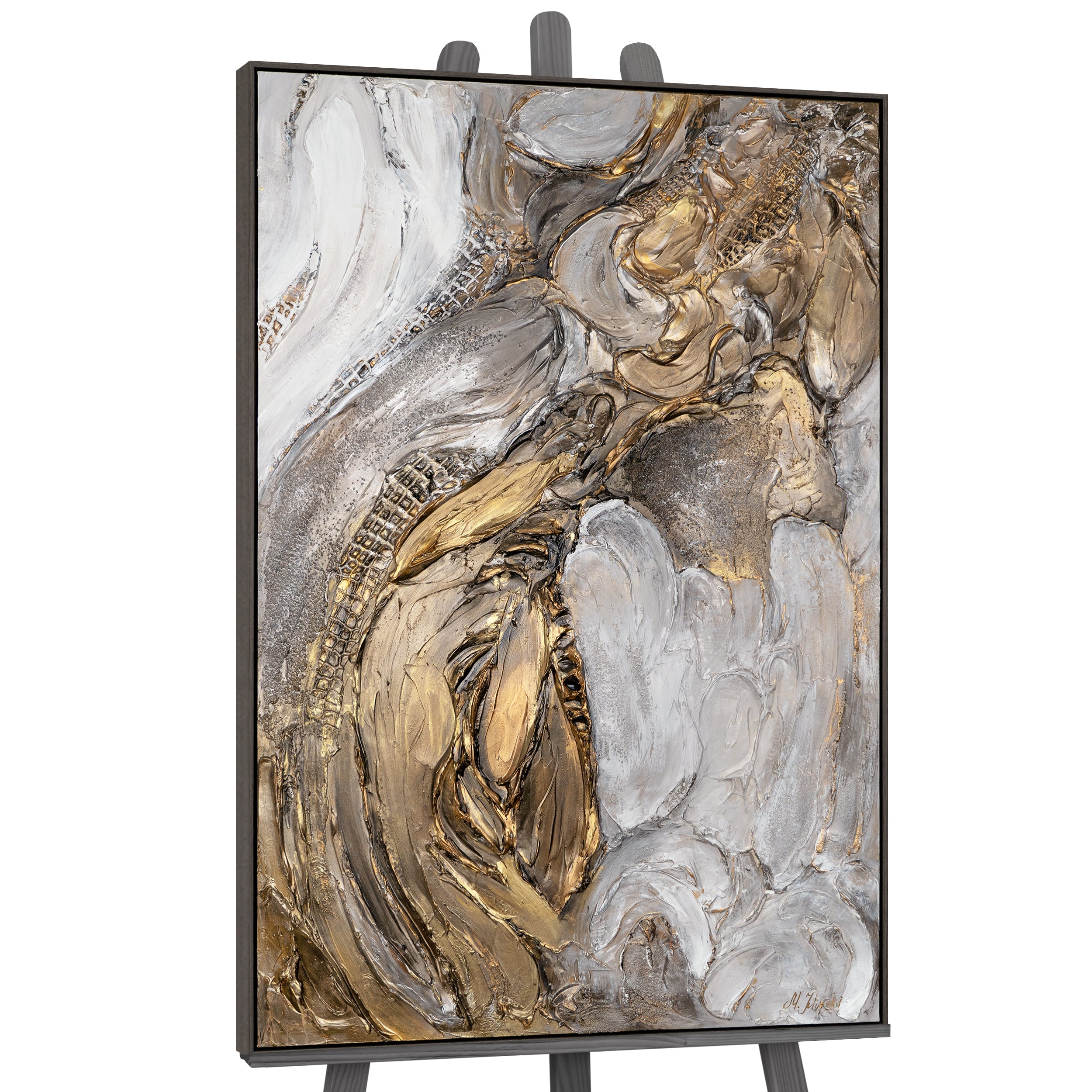 Elegante Reflexionen – Abstraktes Gemälde mit goldenen Akzenten mit Rahmen