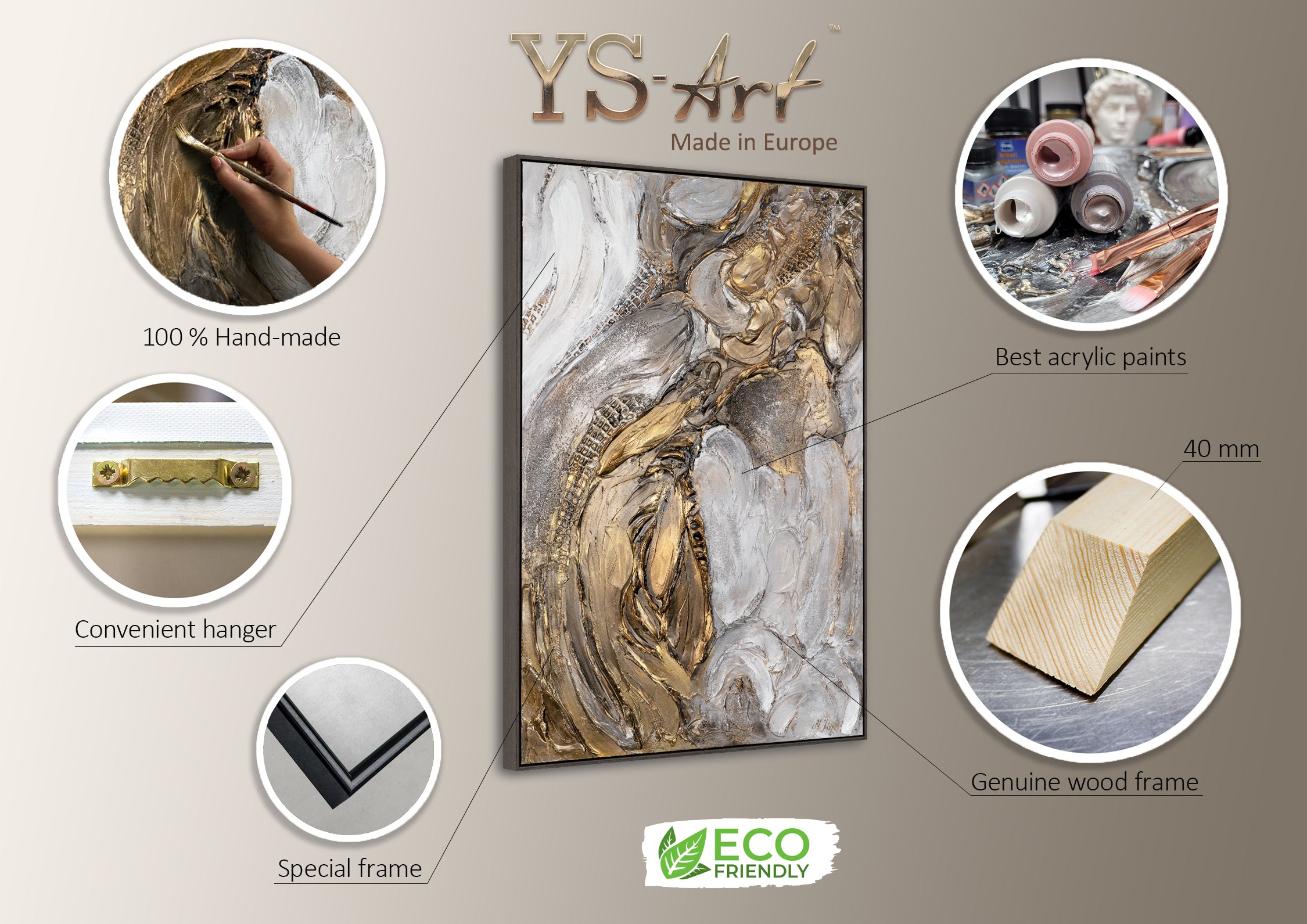 • Elegante Reflexionen – Abstraktes Gemälde mit goldenen Akzenten mit Rahmen