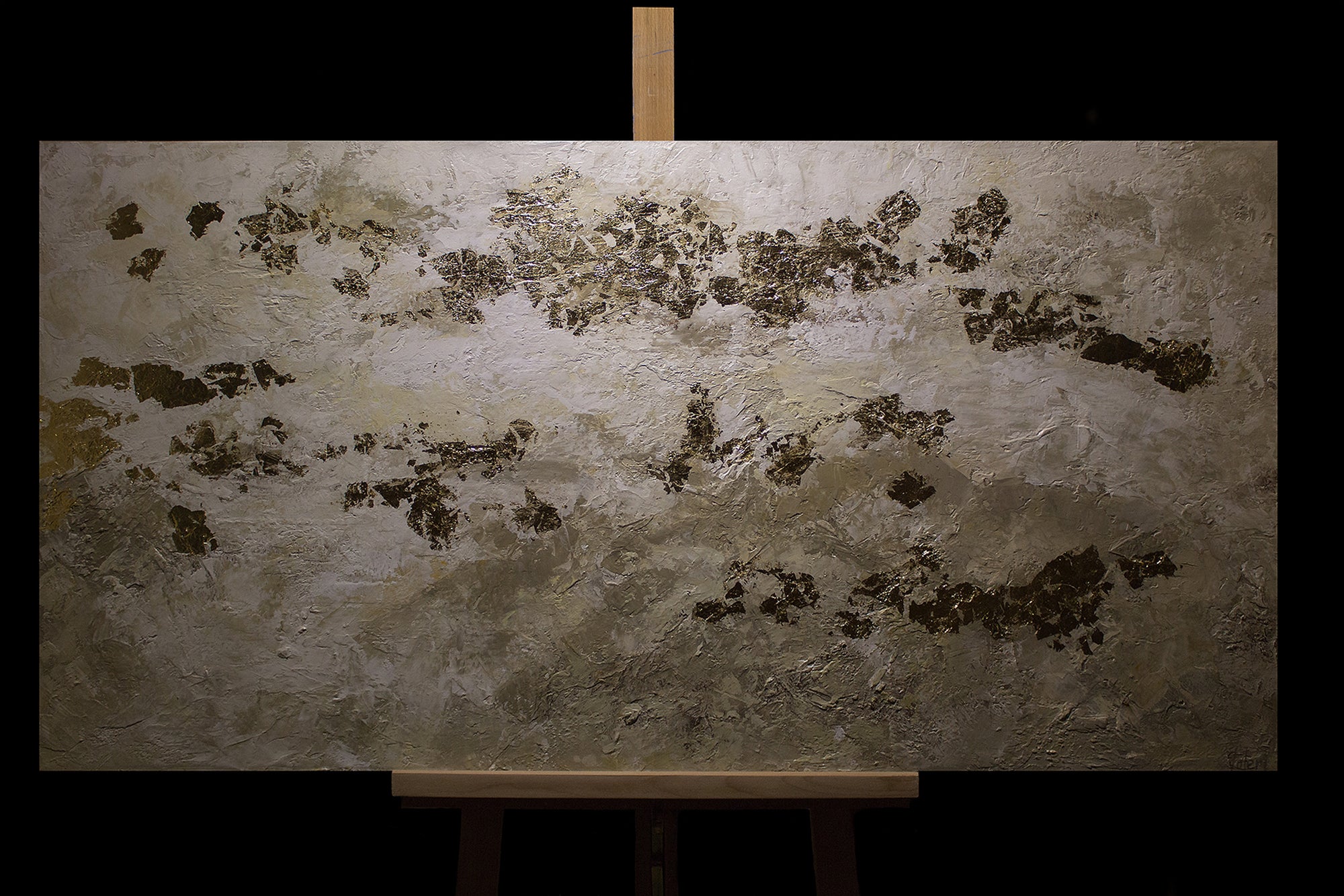 Moderne abstrakte Kunst – Gemälde mit Goldakzenten auf Leinwand
