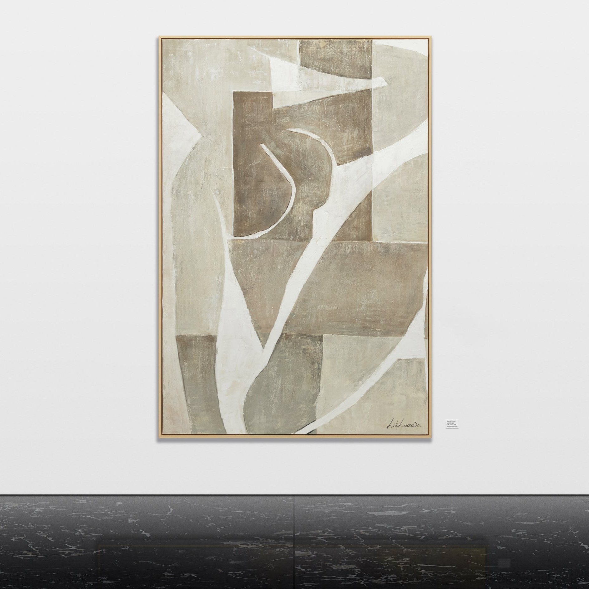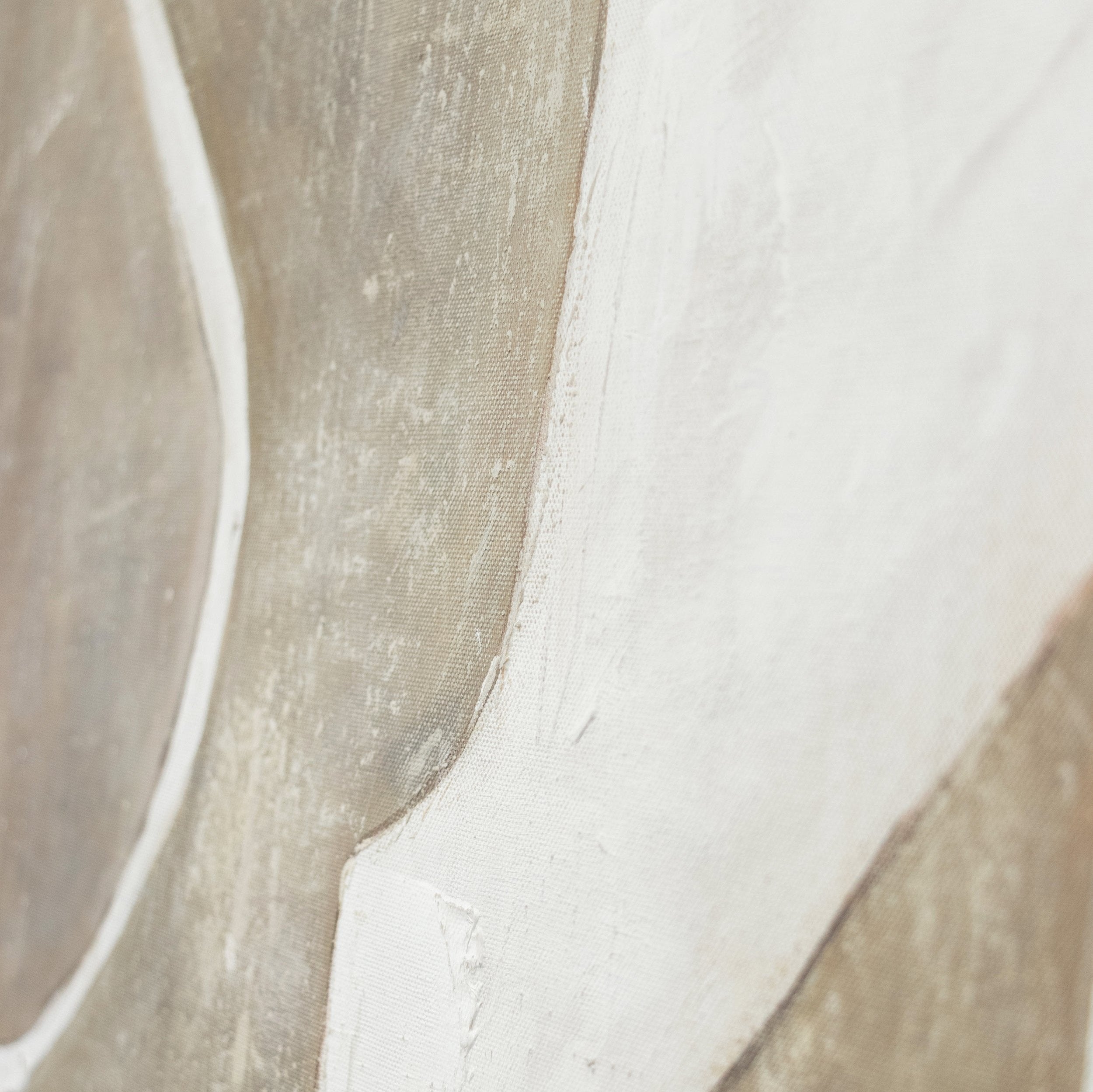 Dieses abstrakte Kunstwerk fängt den Blick durch seine ausgeprägte Verwendung von Beigetönen und minimalistischen Formen ein, ideal für Liebhaber moderner Kunst, die Eleganz und Schlichtheit schätzen.