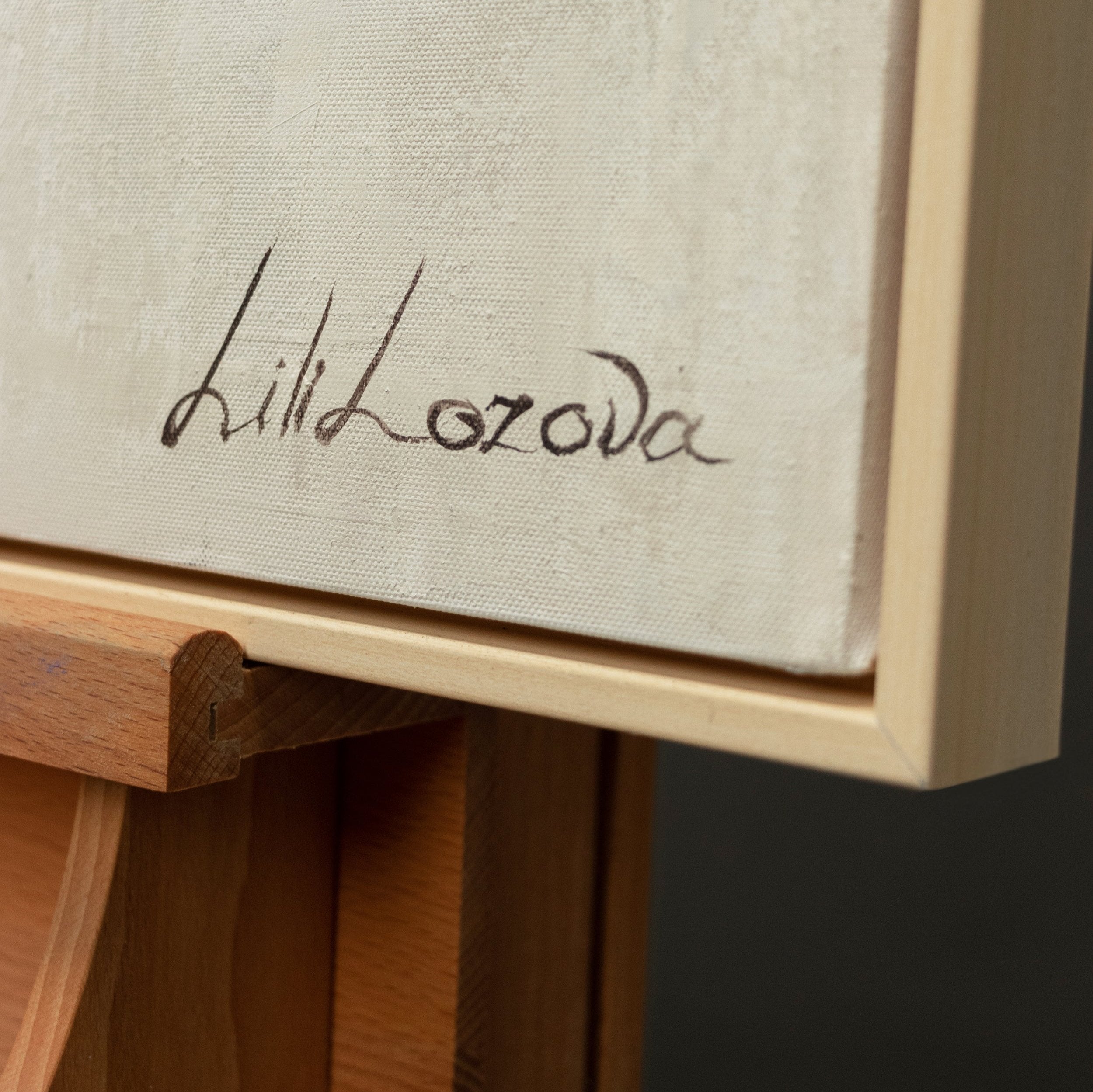 Abstraktes handgemaltes Bild auf Leinwand mit Rahmen Mery - Moderne Kunst in Beige