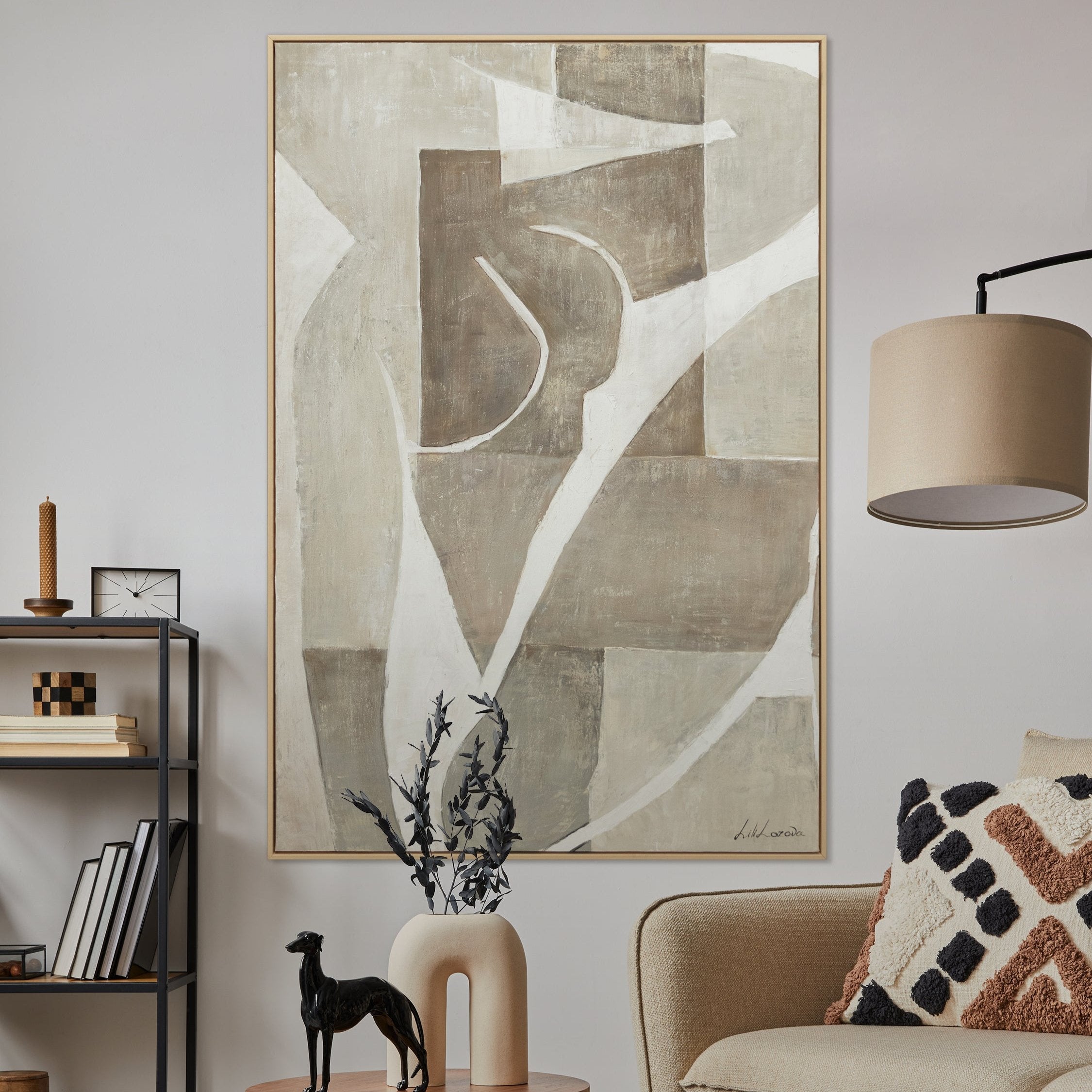 • Abstraktes handgemaltes Bild auf Leinwand mit Rahmen Mery - Moderne Kunst in Beige