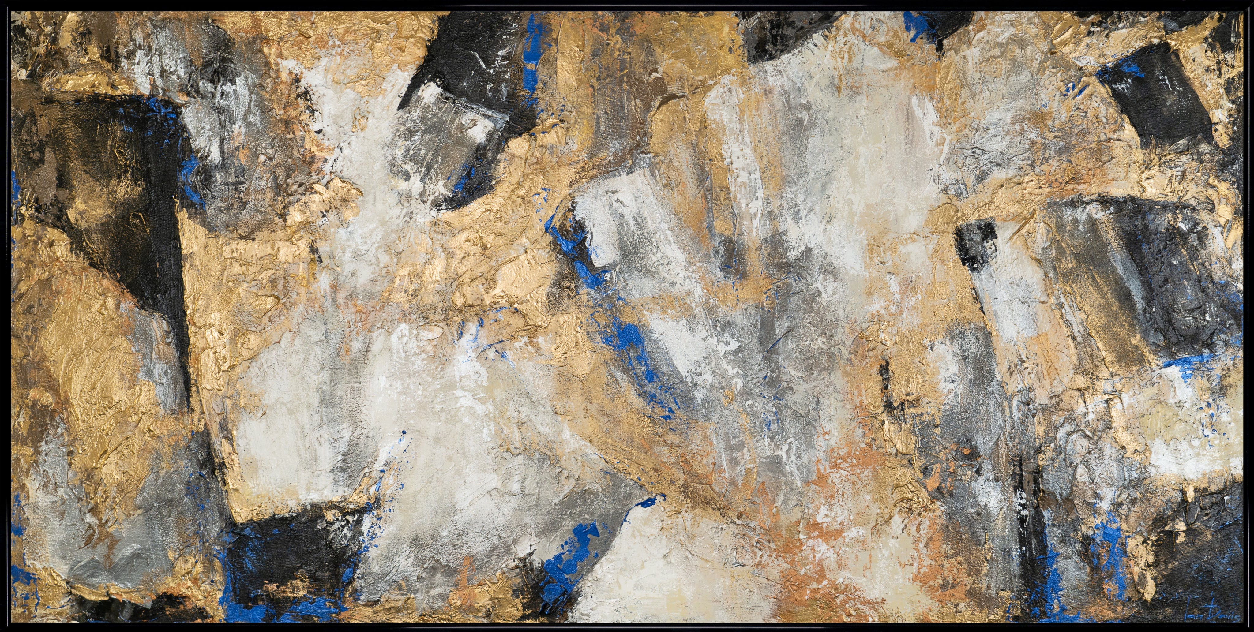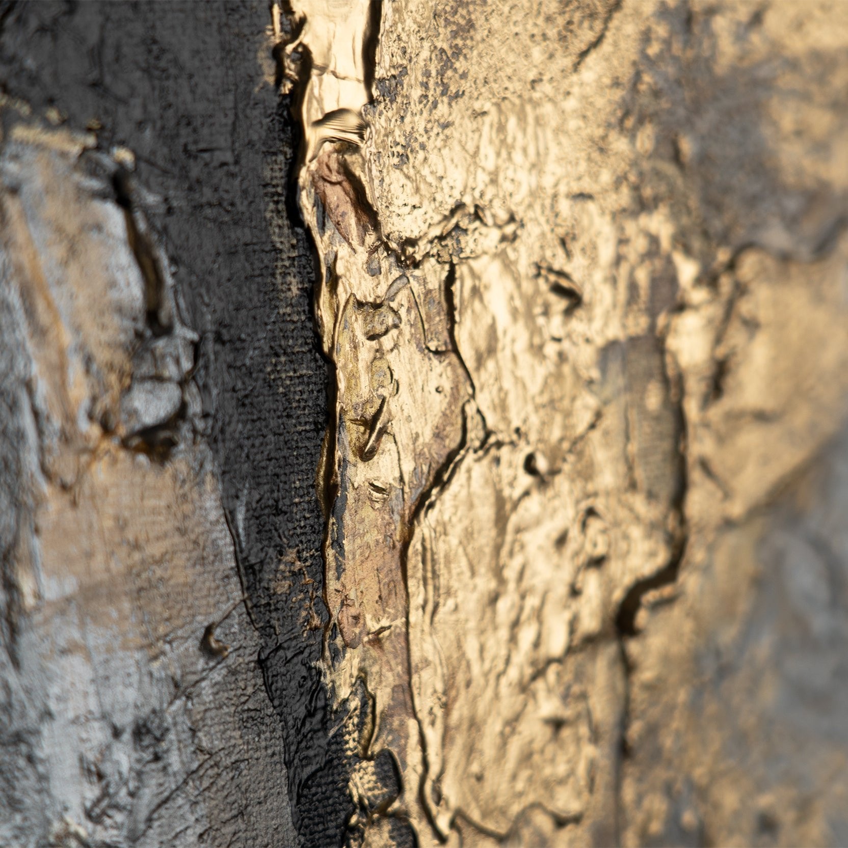 • Modernes abstraktes Acrylgemälde Goldener Kontrast – Handgemalte Leinwandkunst mit Rahmen