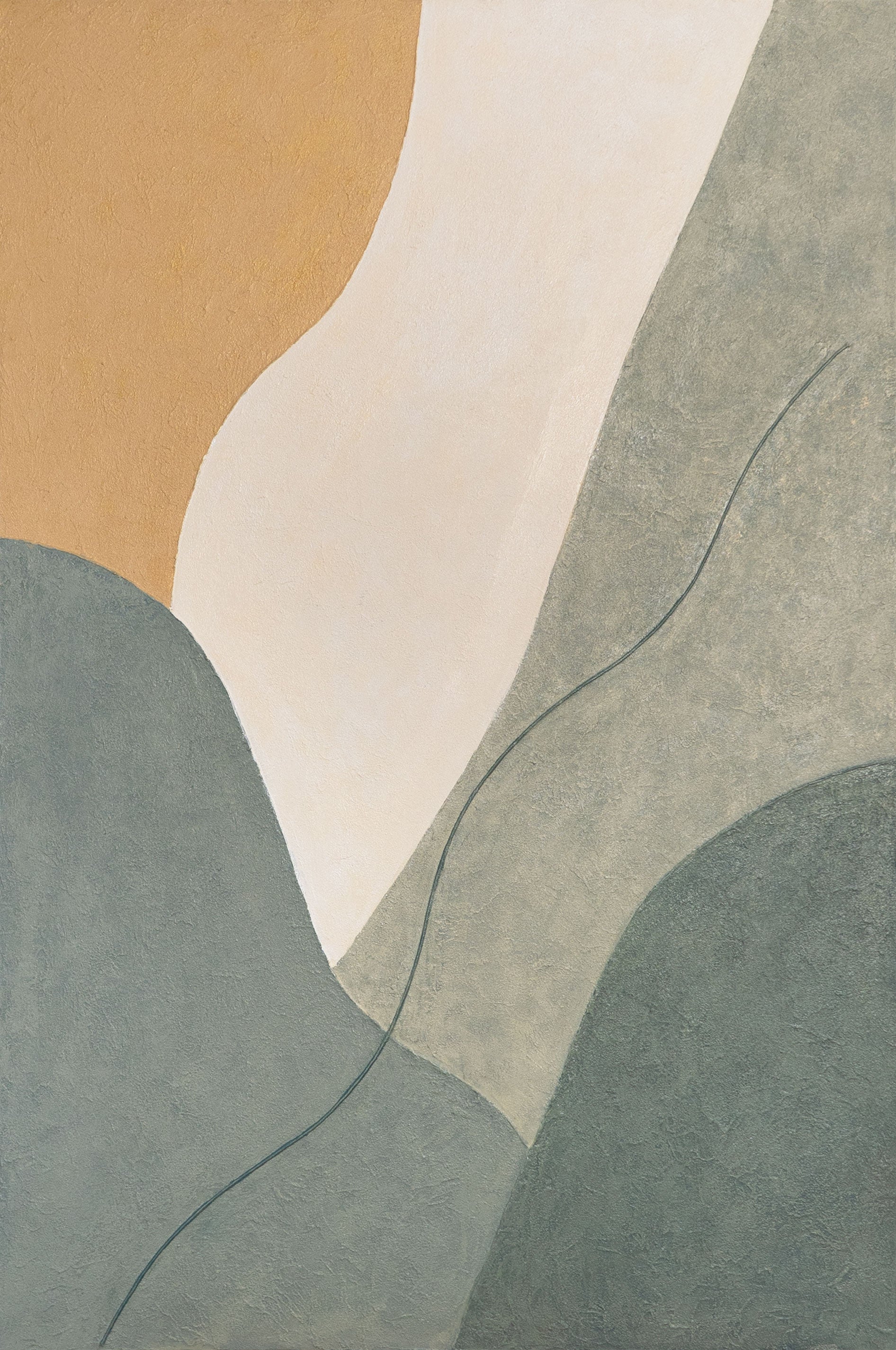 « Ligne Éternelle » incarne la fluidité du mouvement et l'harmonie naturelle. De délicates nuances de vert, de beige et de crème se fondent en une composition douce de lignes et de formes. La fine texture de la surface confère profondeur et éclat à cette peinture acrylique, tandis que l'œuvre dégage une impression de tranquillité et d'équilibre.