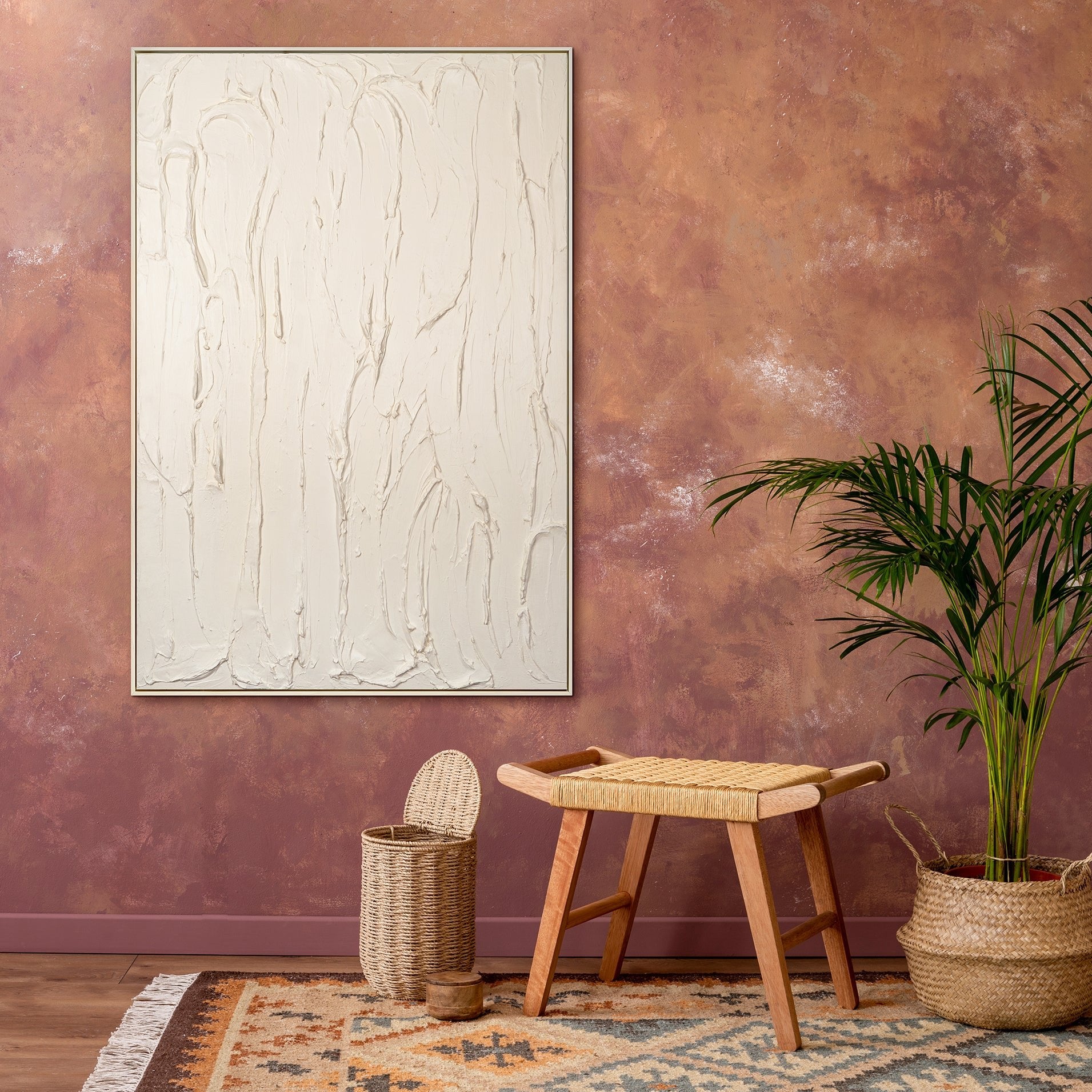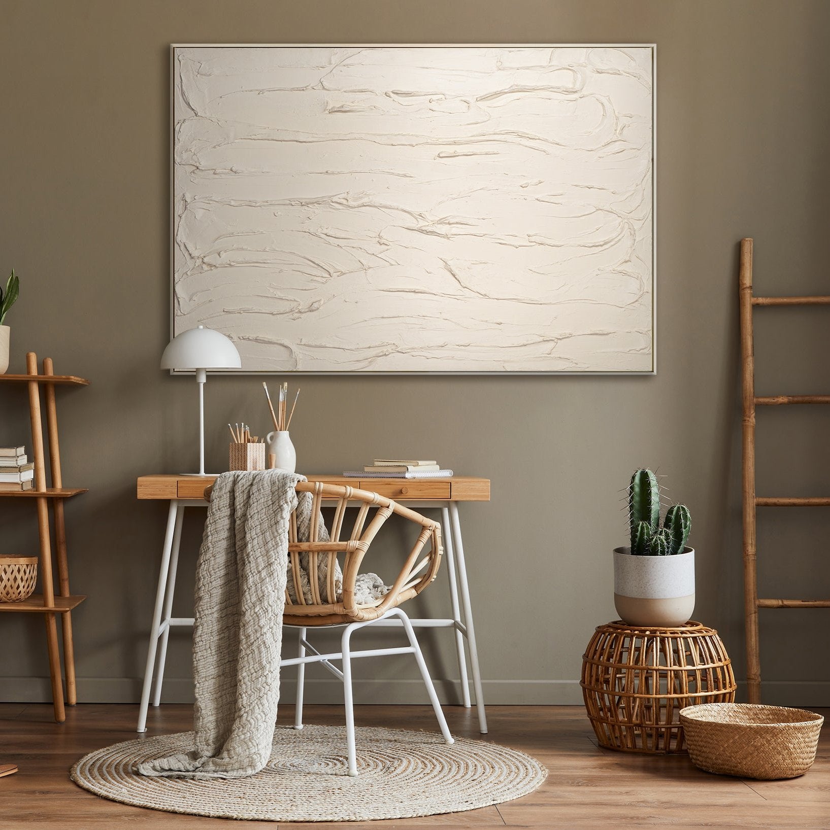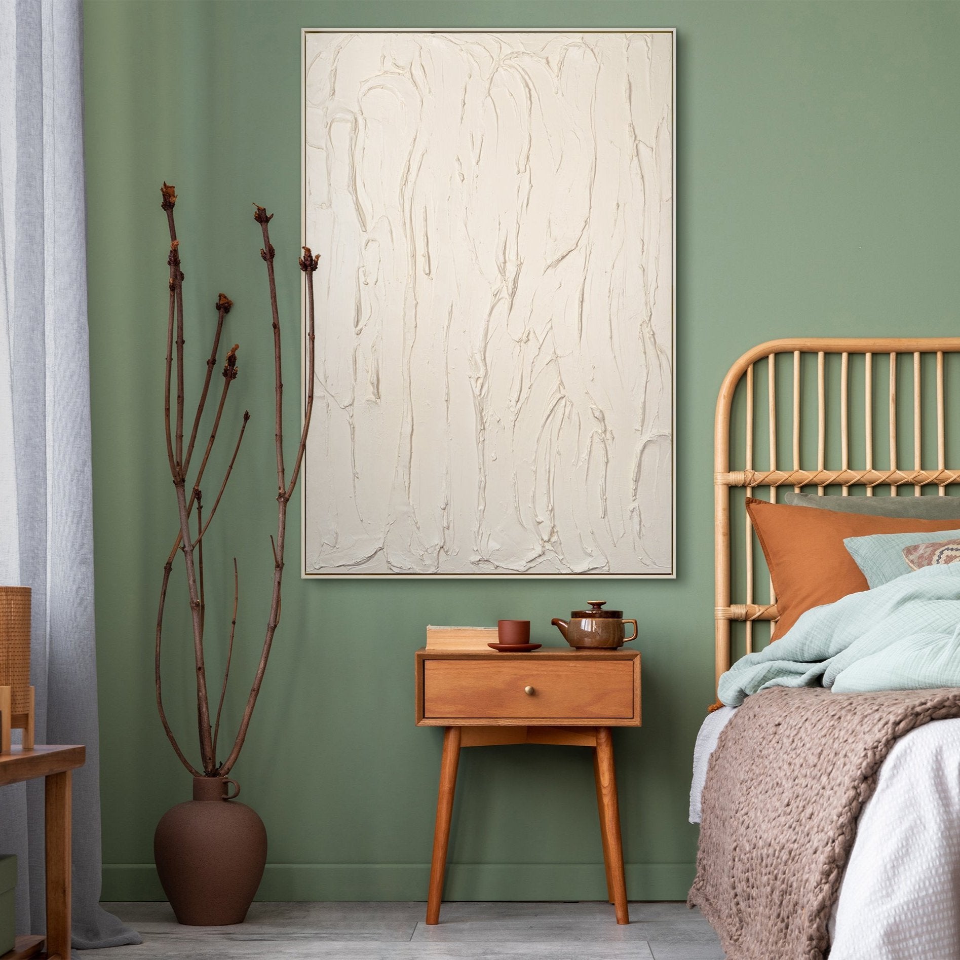 Beige Abstraktes Acryl-Leinwandbild mit Rahmen - Sanfte Berührung