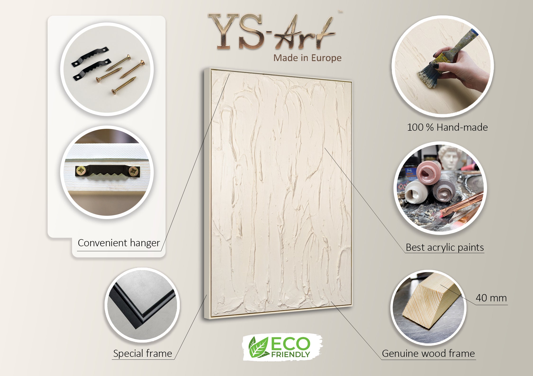 • Beige Abstraktes Acryl-Leinwandbild mit Rahmen - Sanfte Berührung
