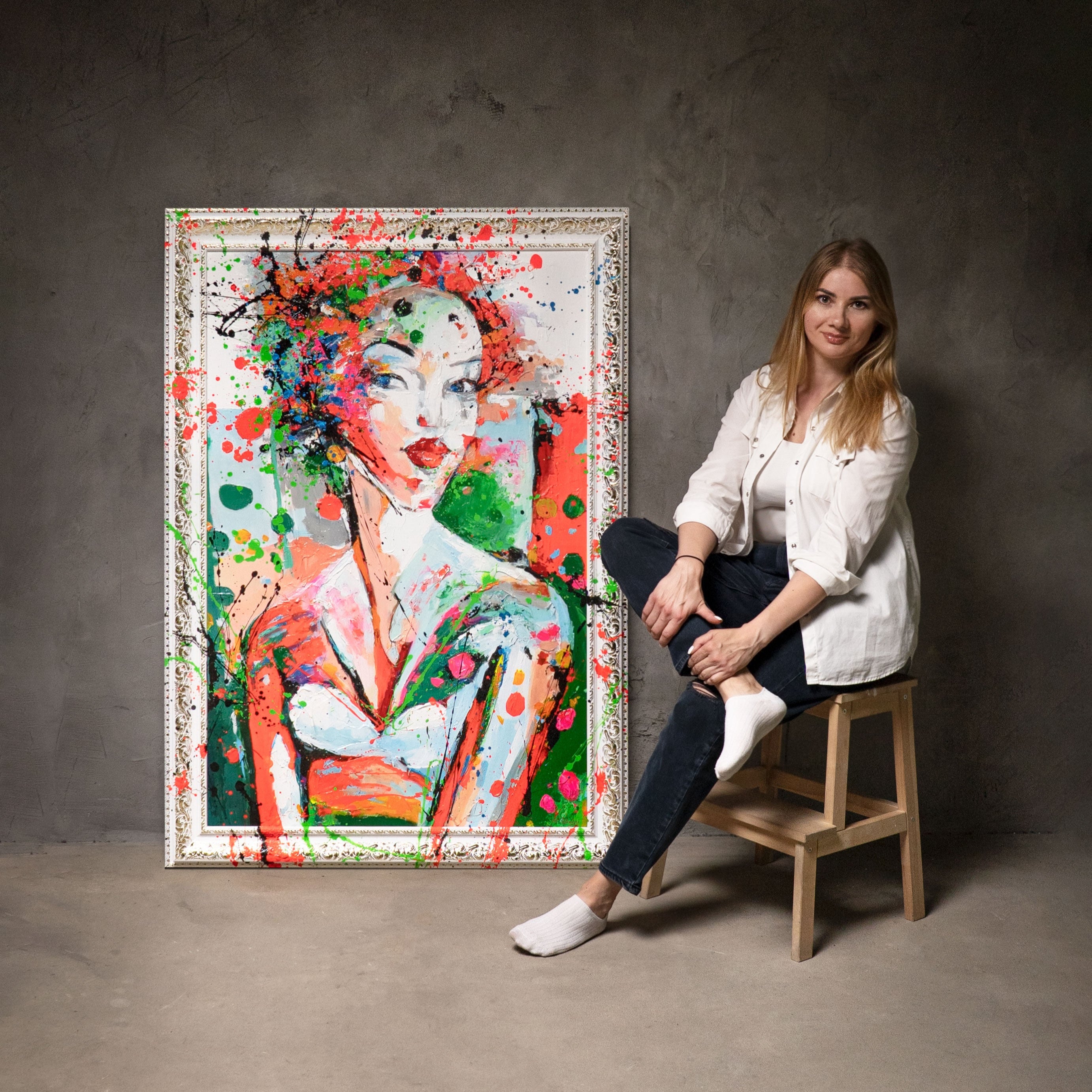 • Abstraktes Porträt Frau handgemaltes Leinwandbild Atelier
