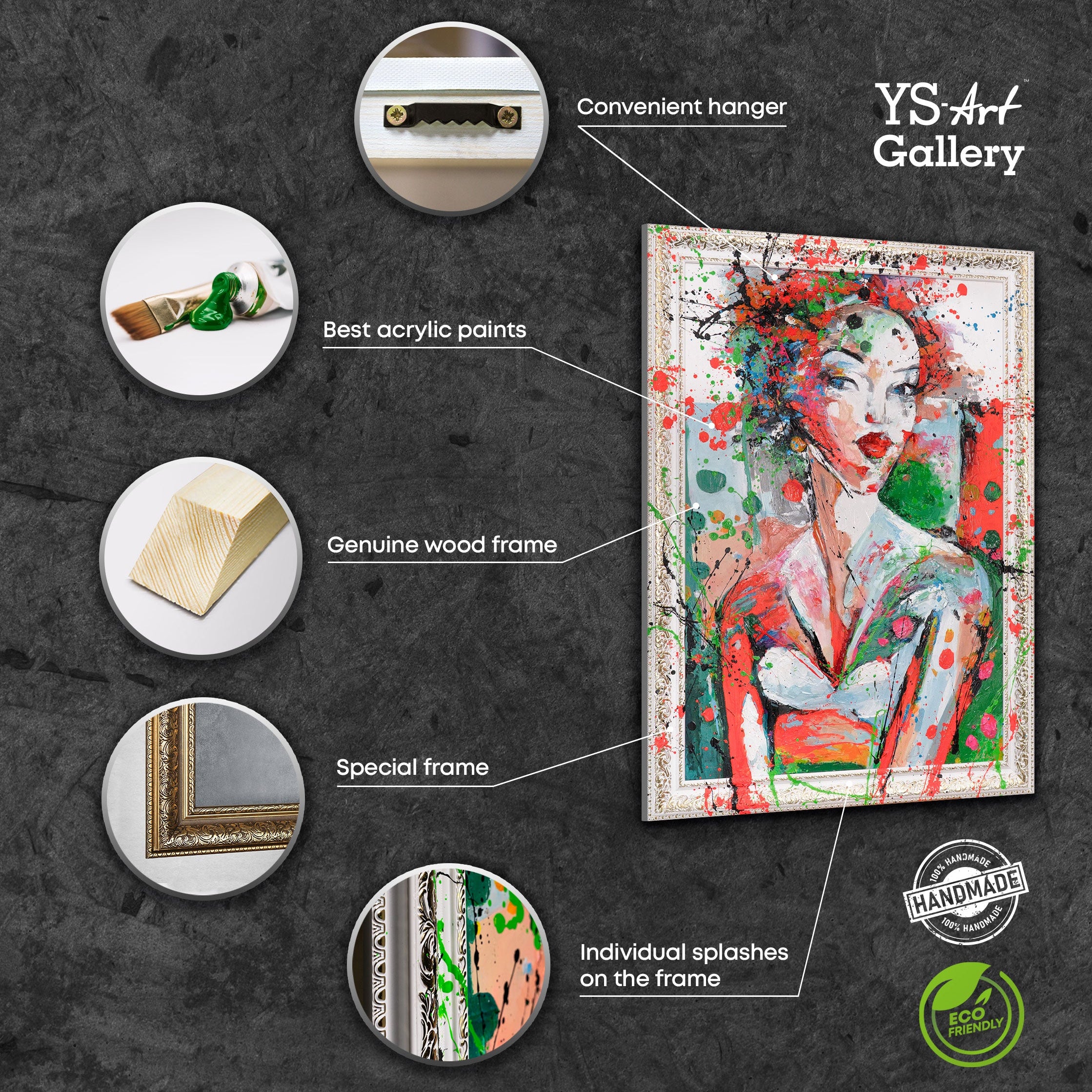 Diese Serie von Gemälden ist alles andere als Massenware: Jedes Werk ist zu 100 % handgefertigt und absolut einzigartig. Es wird auf der Welt kein zweites identisches Bild geben, da jedes individuell für den Käufer geschaffen wird.